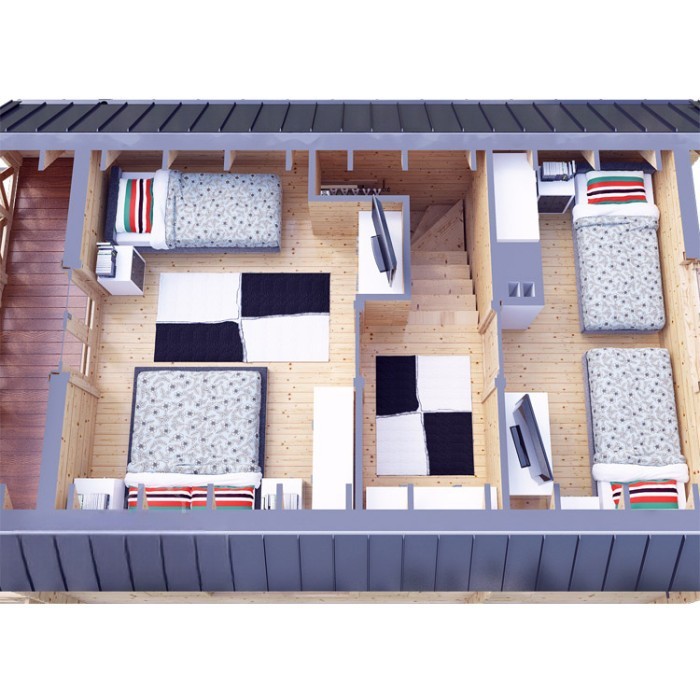 • Konstrukcja dachu przekrój belek 220/60 świerk C24 + płyta drzewna pióro-wpust (Naturheld Wand 60mm) z belkami stropowymi