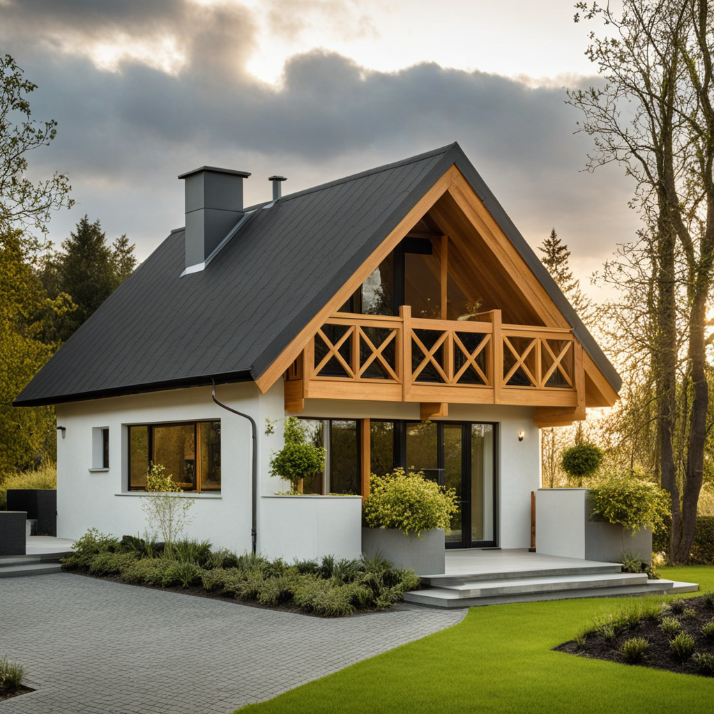 • Materiał elewacji – pomalowana deska elewacyjna świerkowa lub tynk