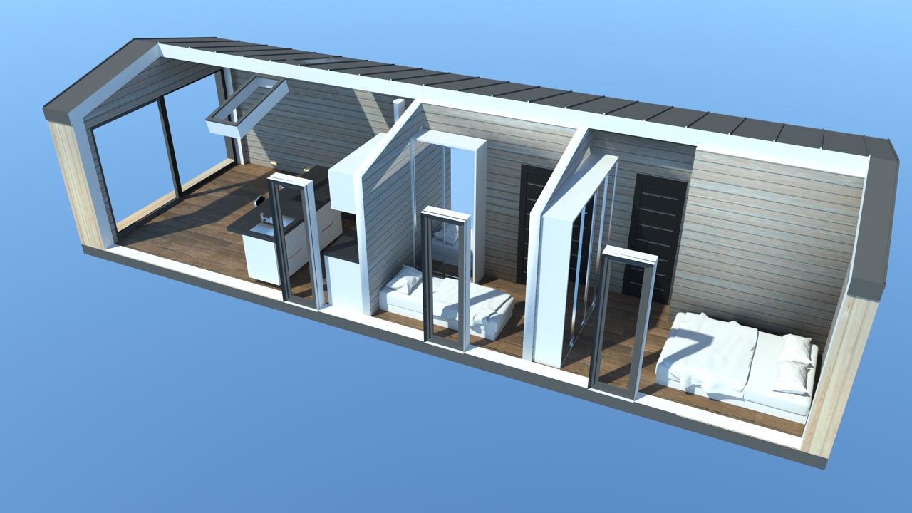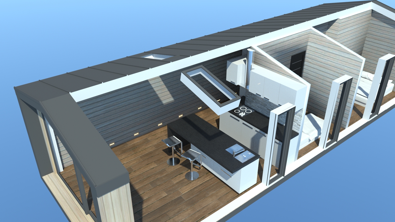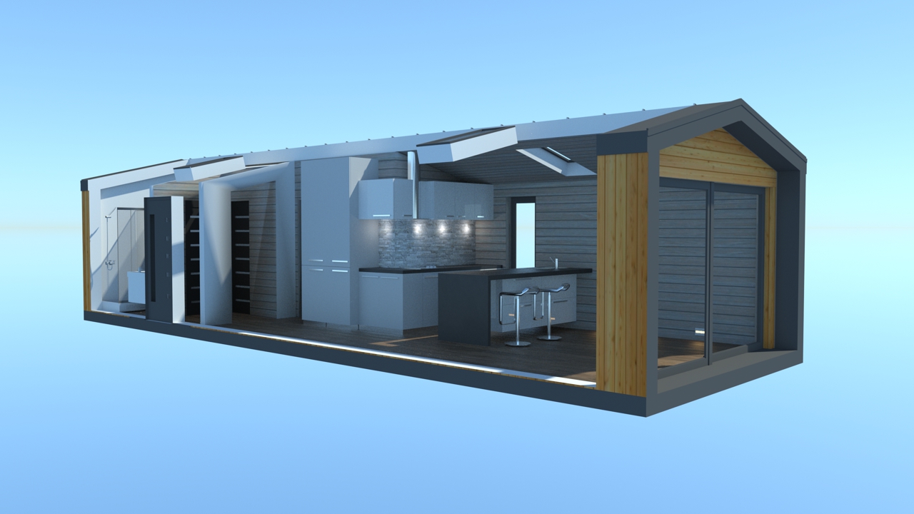 • Konstrukcja domu szkieletowego z przekroju belek 160/60 świerk C24+płyta konstrukcyjna P5 + płyta drzewna pióro-wpust (Naturheld wand 60mm) ściany z zewnątrz + tynk elewacyjny