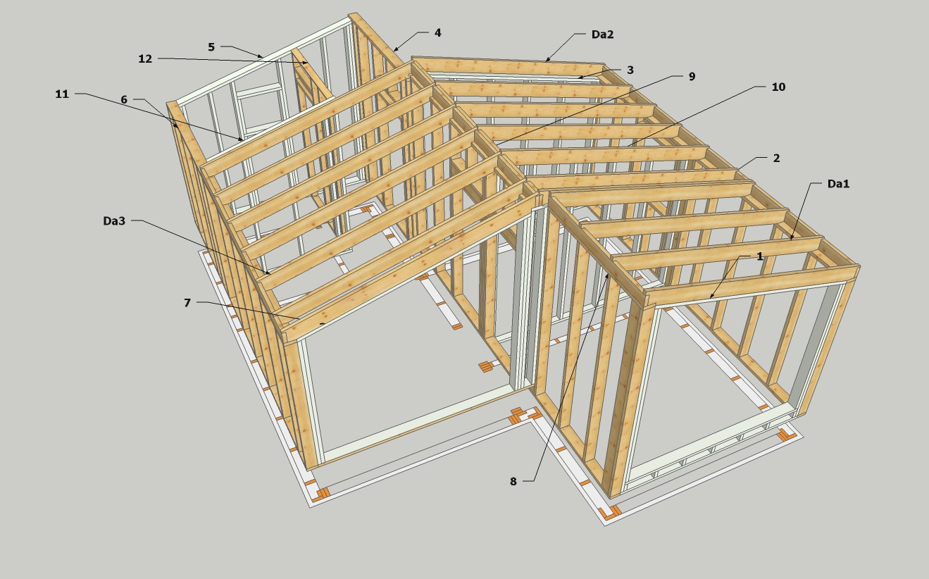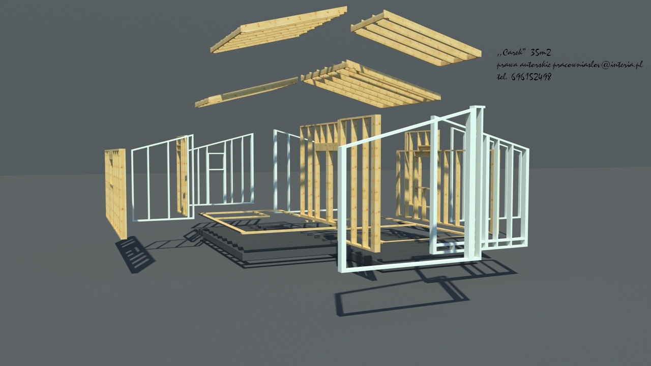 • Konstrukcja ścian działowych z przekroju belek 145/45 świerk C24