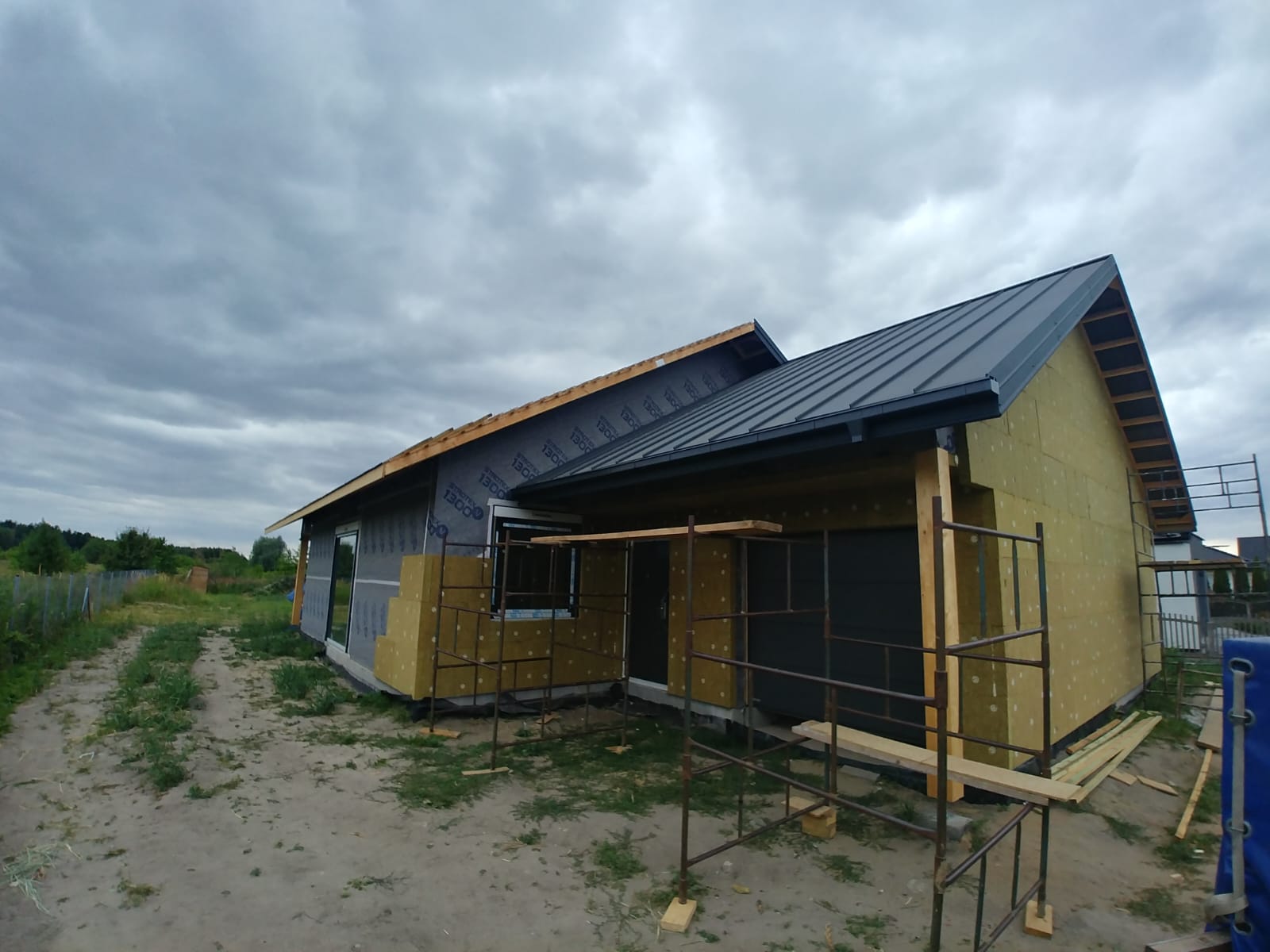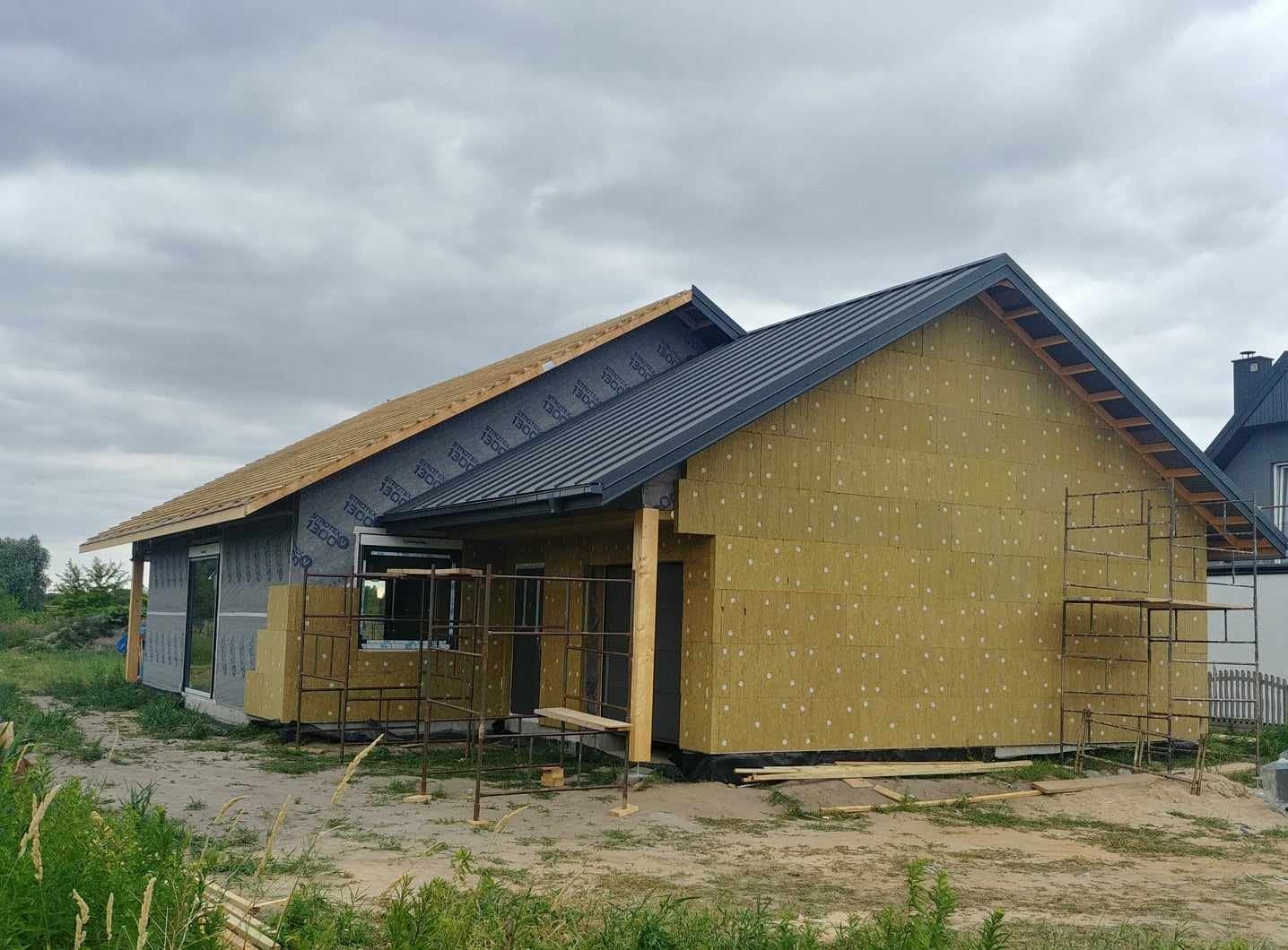 Ocieplenie wewnątrz ścian wełną drzewną (Naturheld flex 160mm)+płyta konstrukcyjna P5 + folia paroizolacyjna + ruszt instalacyjny + KG bez gładzi