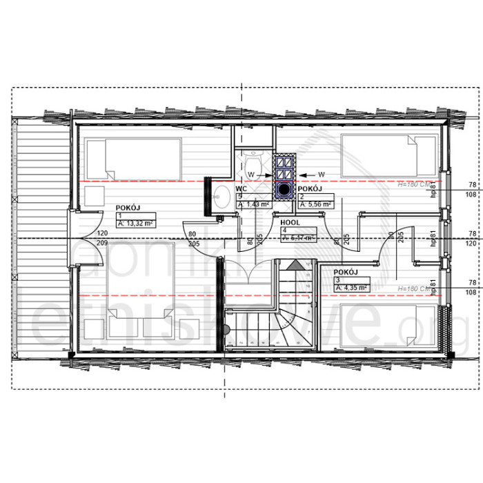 • Konstrukcja ścian wewnętrznych z przekroju 145/45 świerk C24