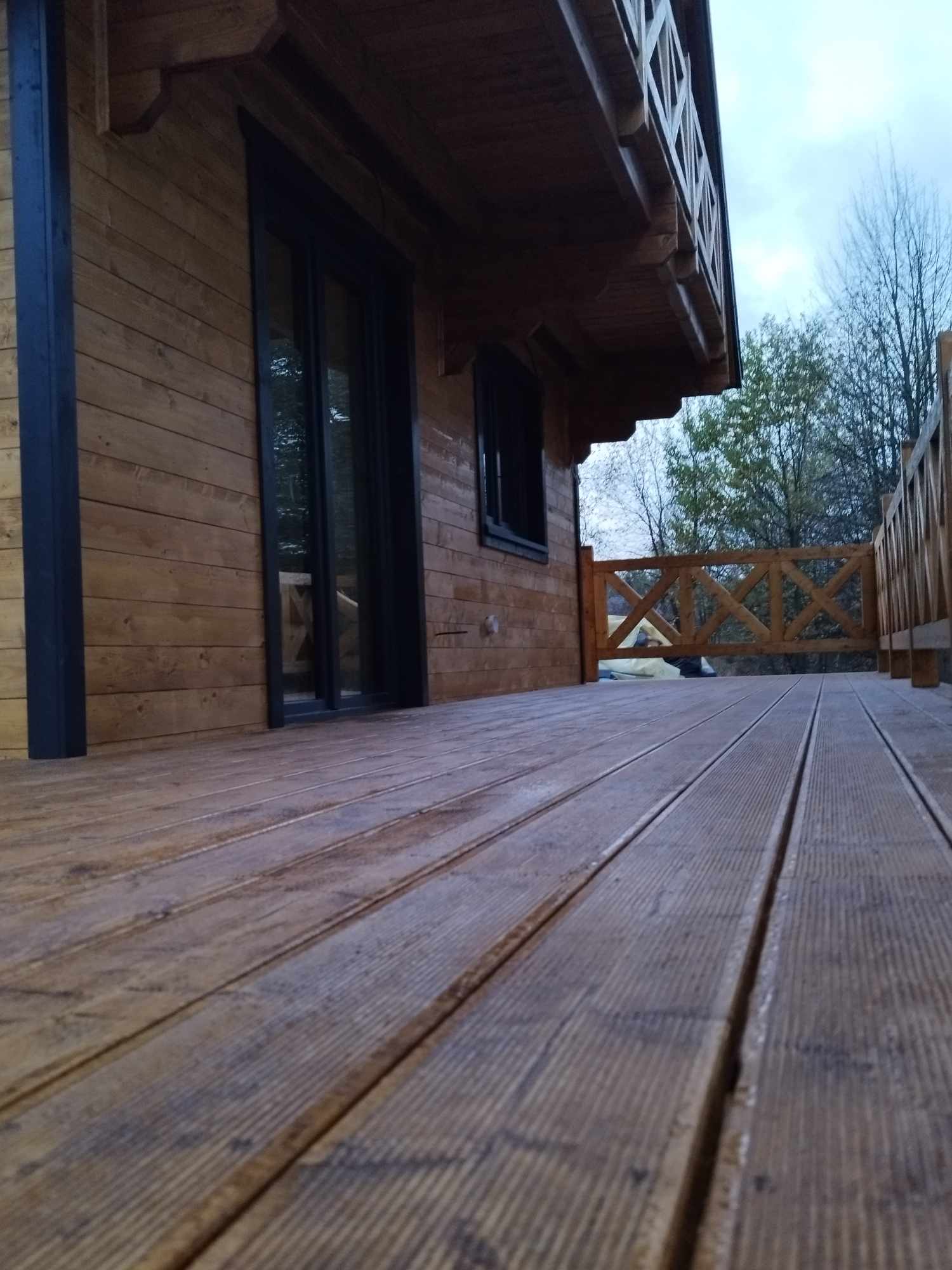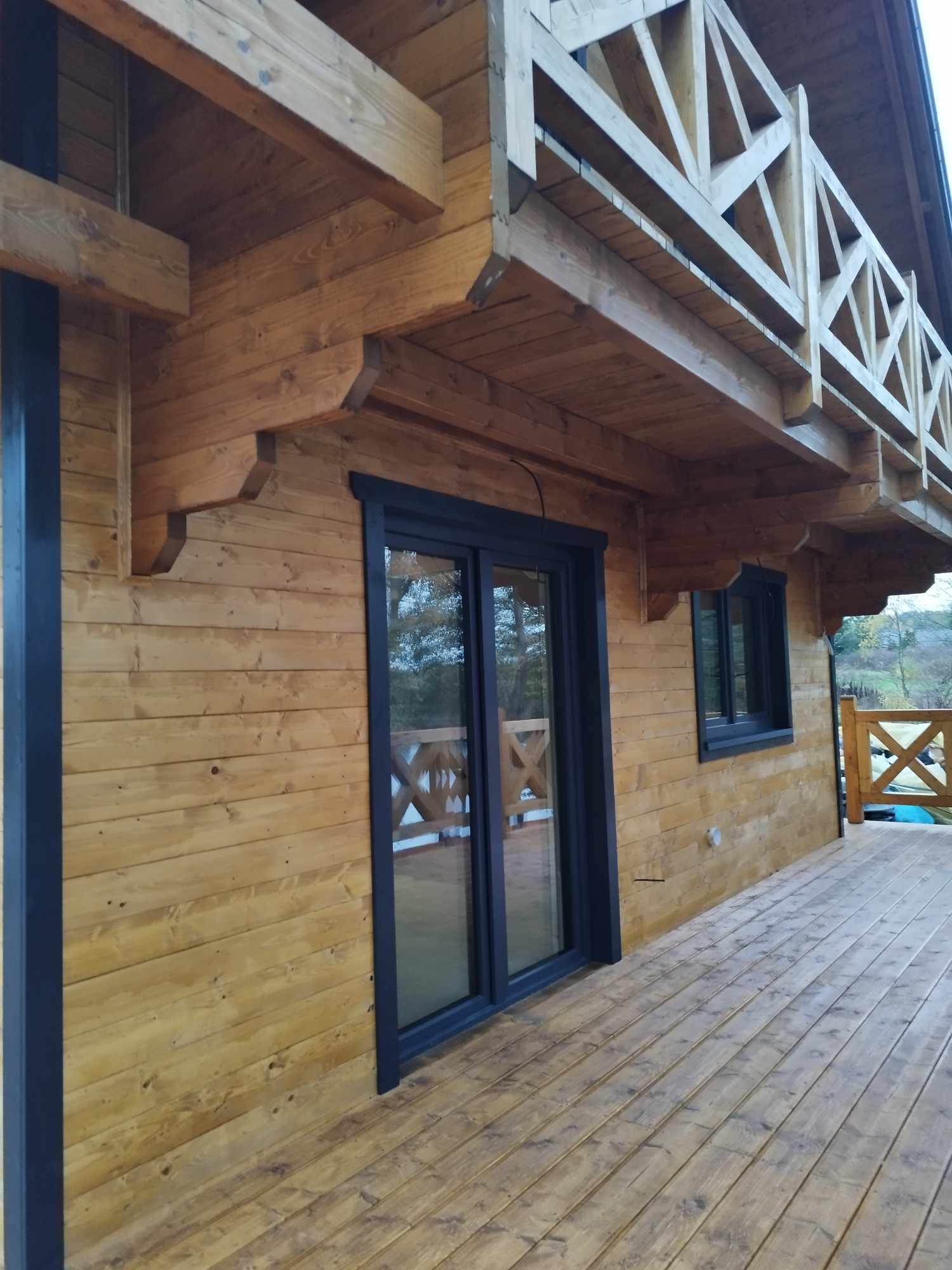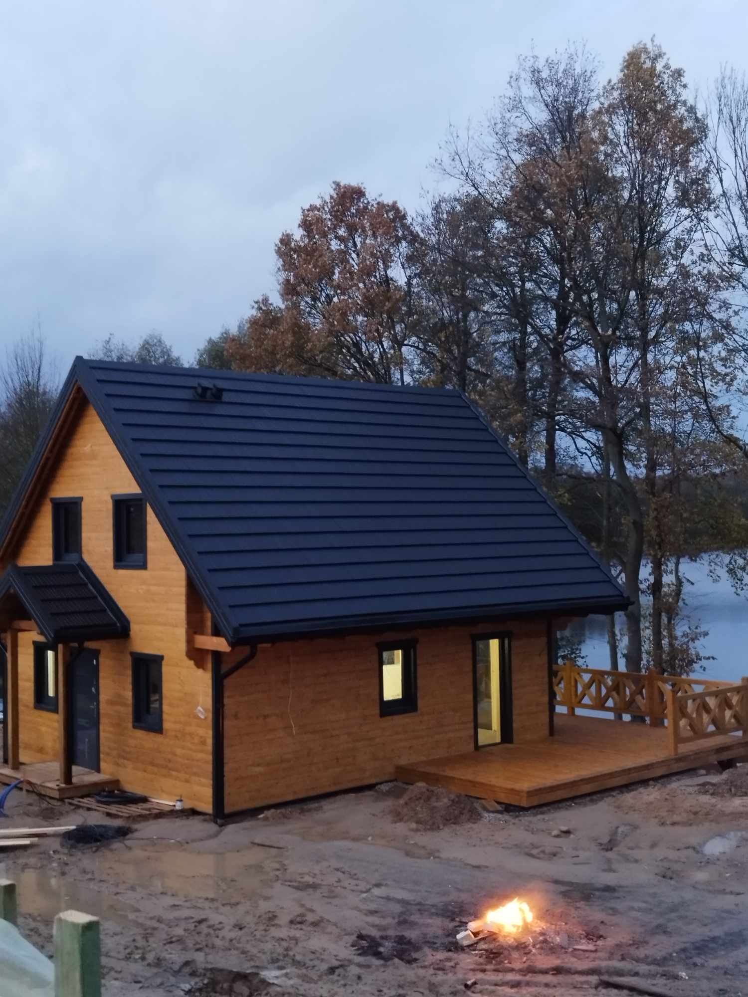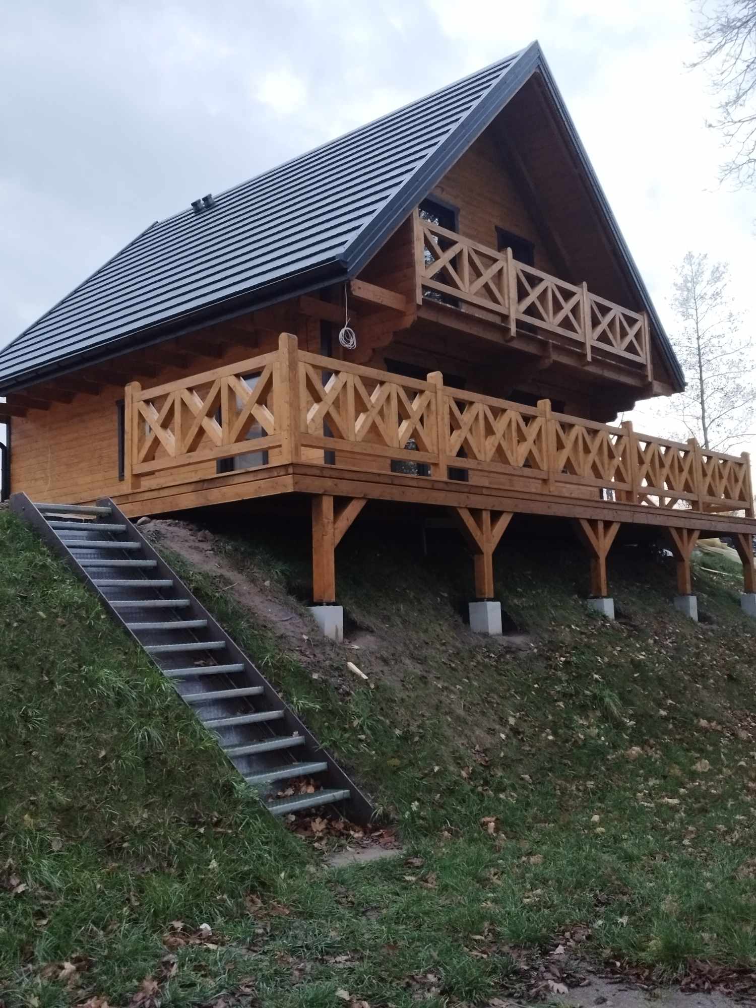 • Konstrukcja domu szkieletowego z przekroju belek 160/60 świerk C24+płyta konstrukcyjna P5 + płyta drzewna pióro-wpust (Naturheld wand 60mm) ściany z zewnątrz + tynk elewacyjny