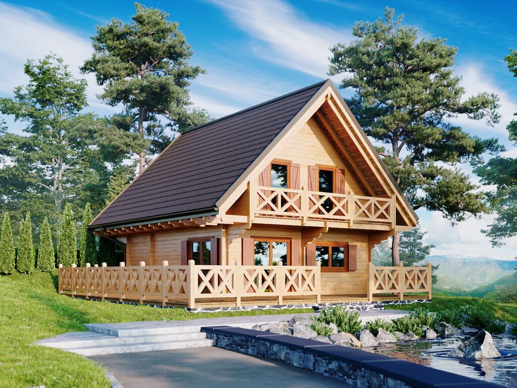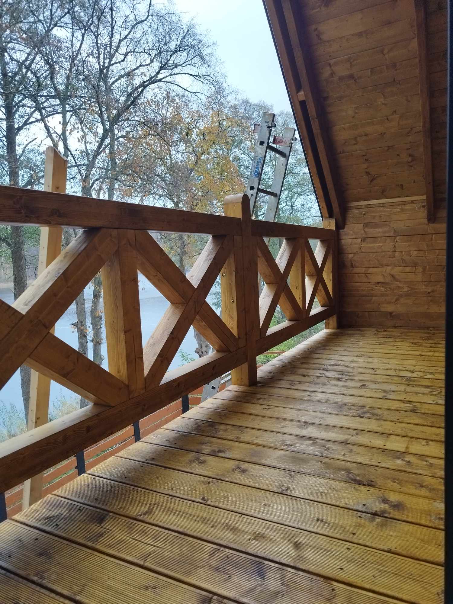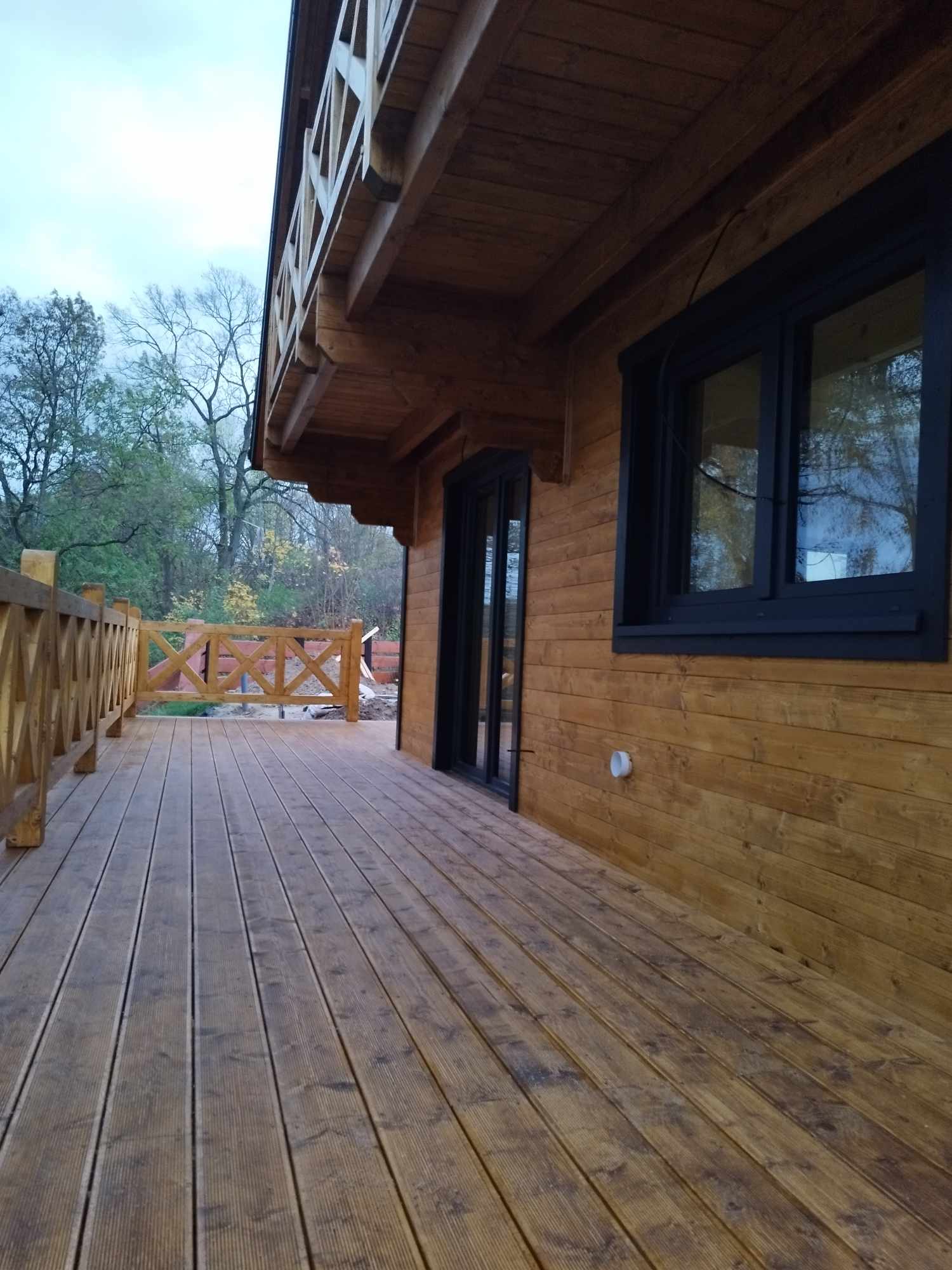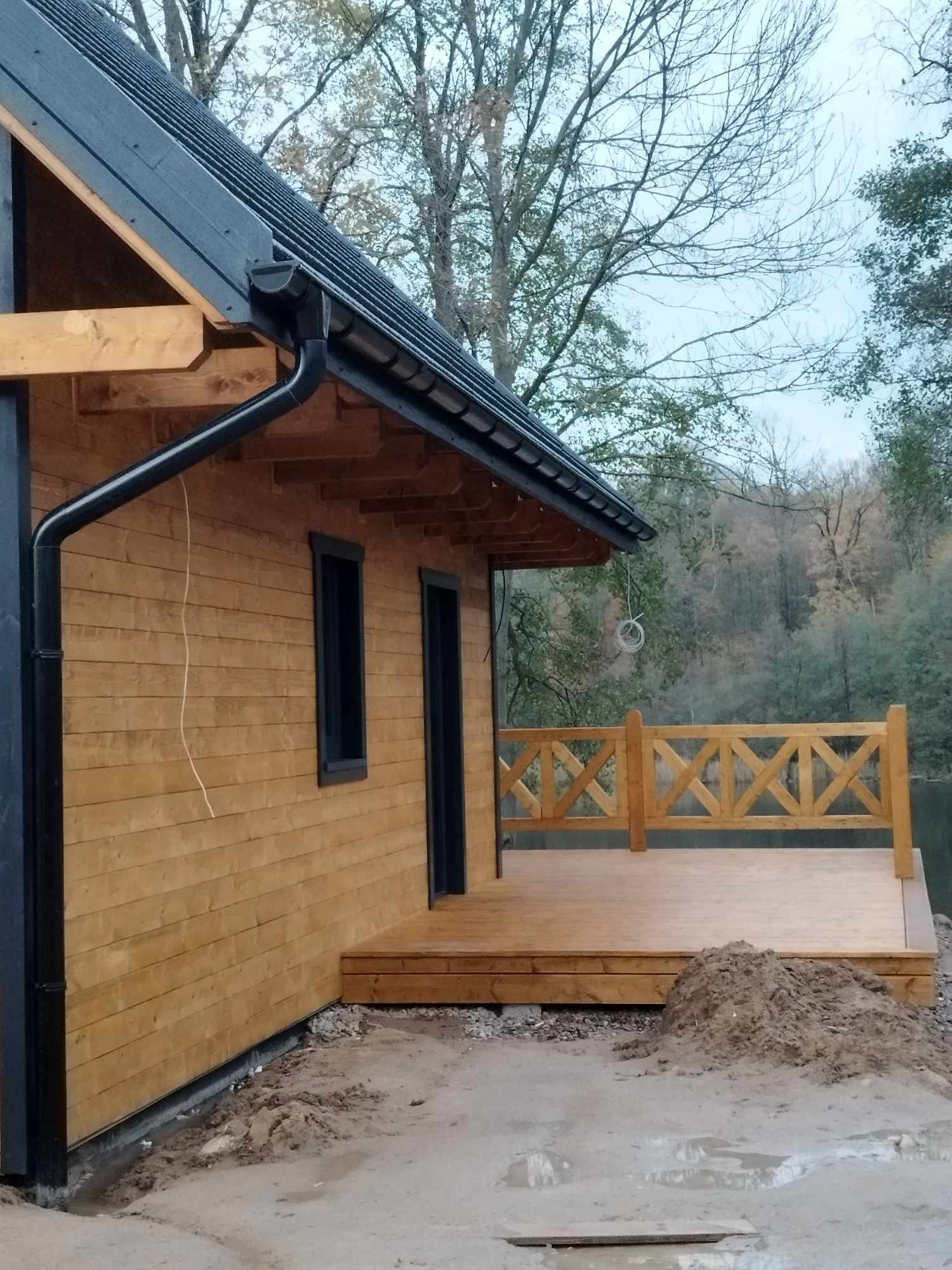 • Konstrukcja domu szkieletowego z przekroju belek 160/60 świerk C24+płyta konstrukcyjna P5 + płyta drzewna pióro-wpust (Naturheld wand 60mm) ściany z zewnątrz + tynk elewacyjny