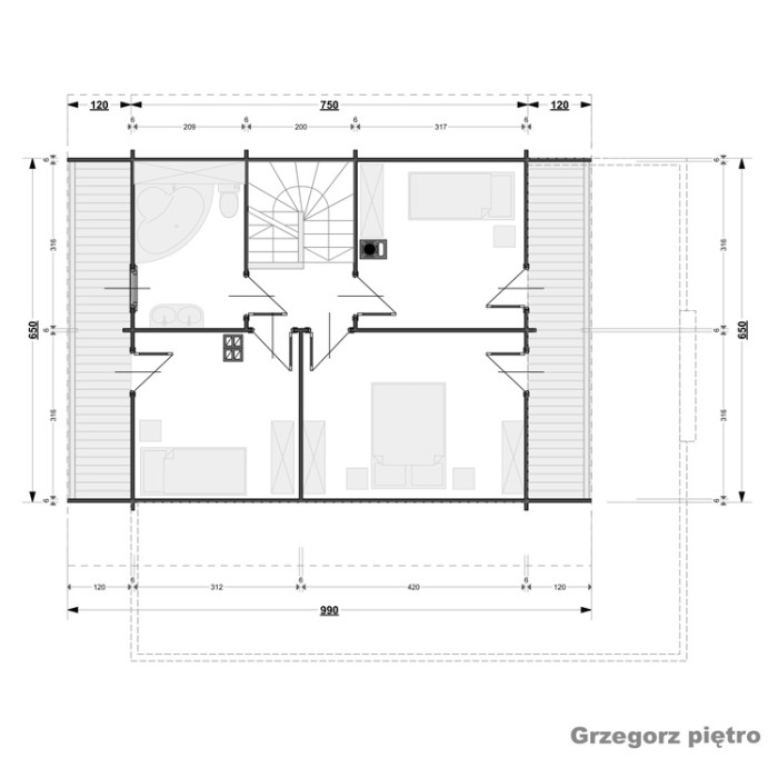 Ilość okien uch. rozw.: 2x 900×2050 mm (ISO), 1x 650×650 mm (ISO)