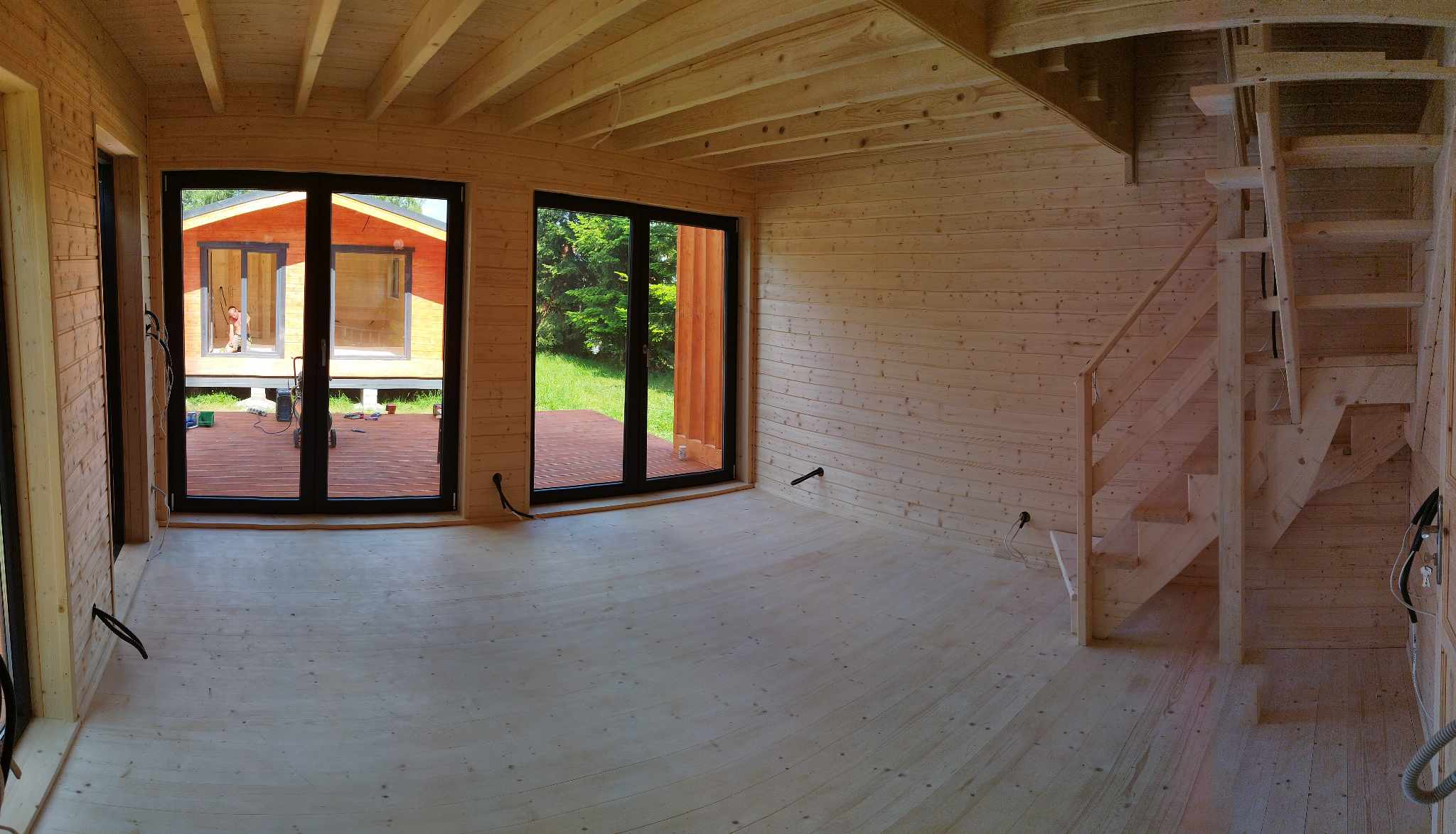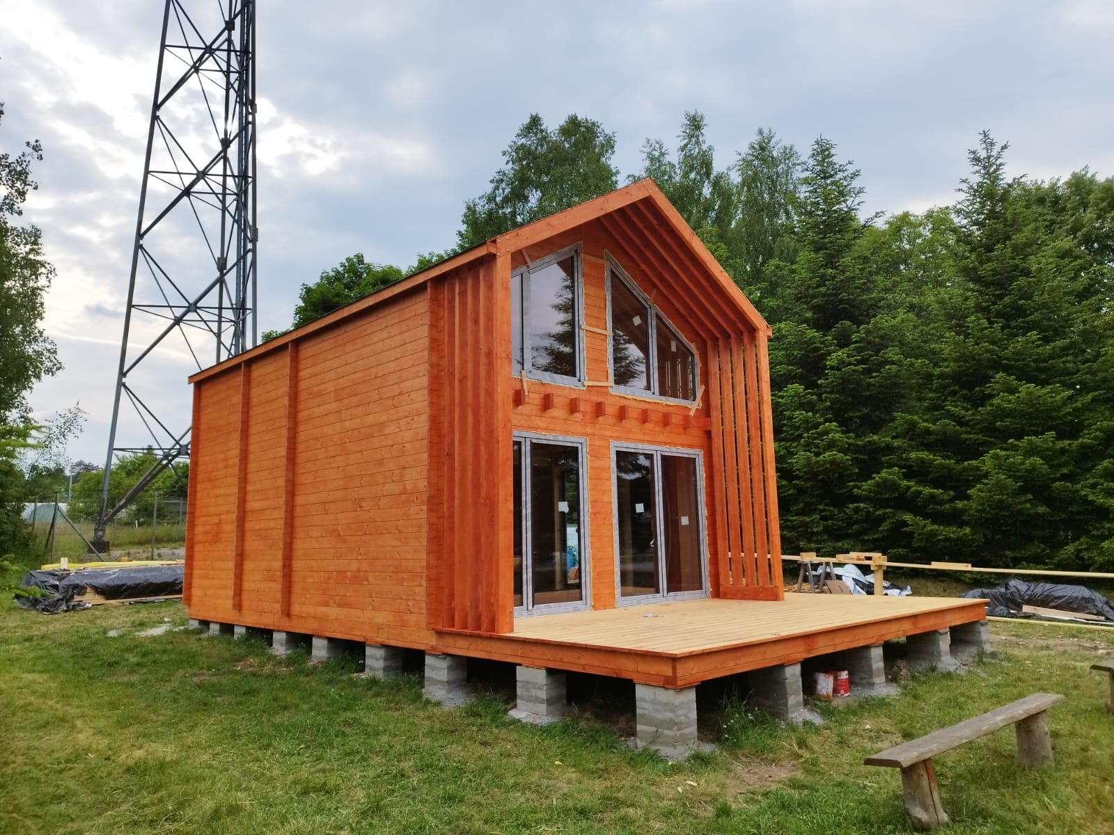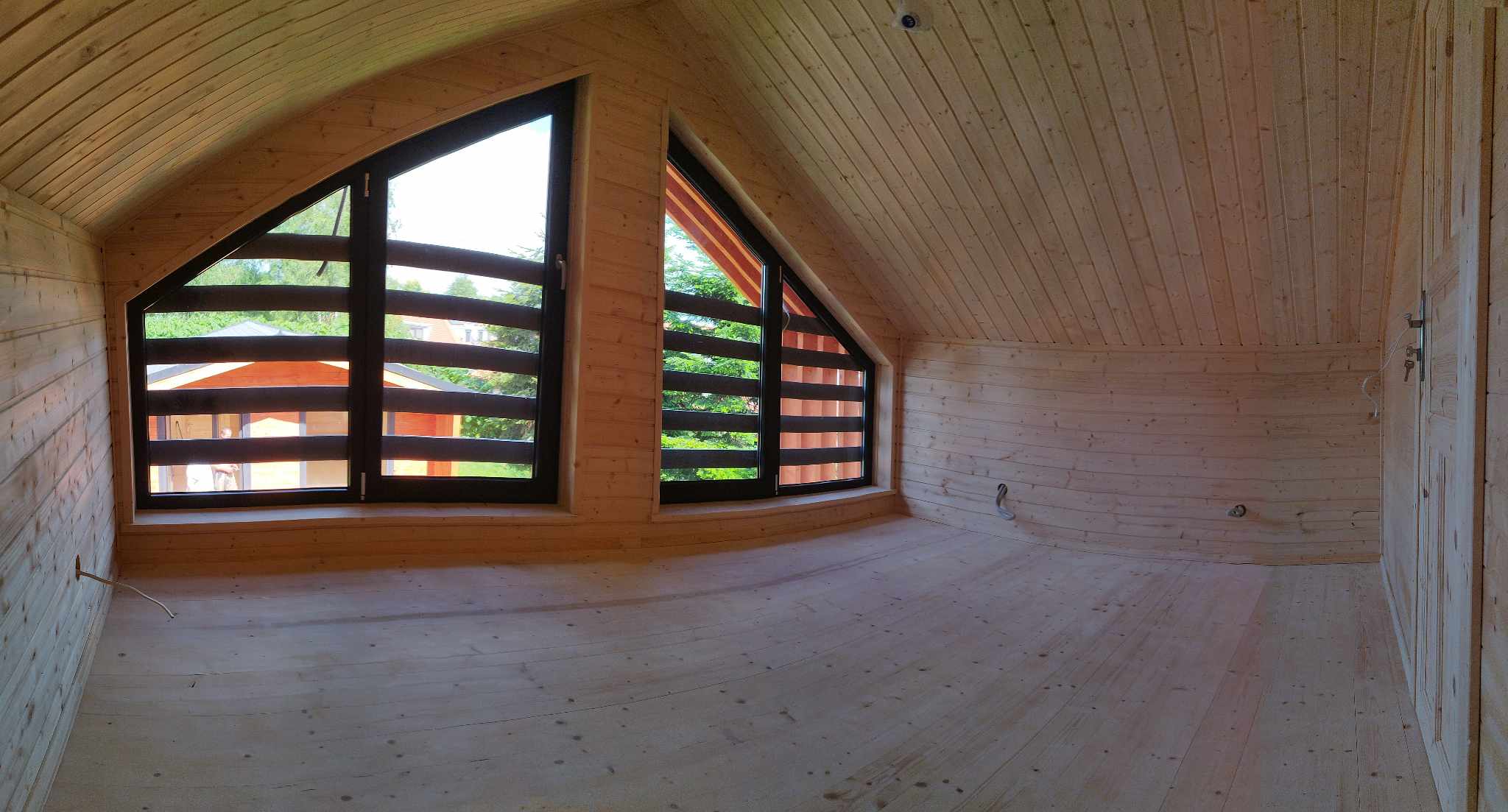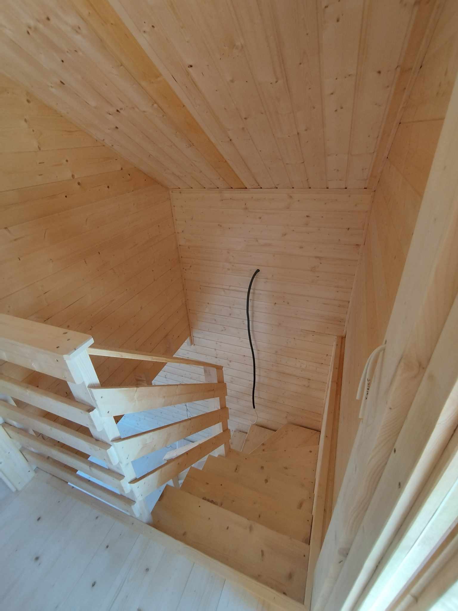 • Konstrukcja domu szkieletowego z przekroju belek 160/60 świerk C24+płyta konstrukcyjna P5 + płyta drzewna pióro-wpust (Naturheld wand 60mm) ściany z zewnątrz + tynk elewacyjny