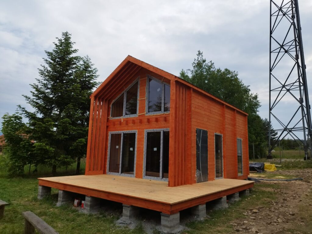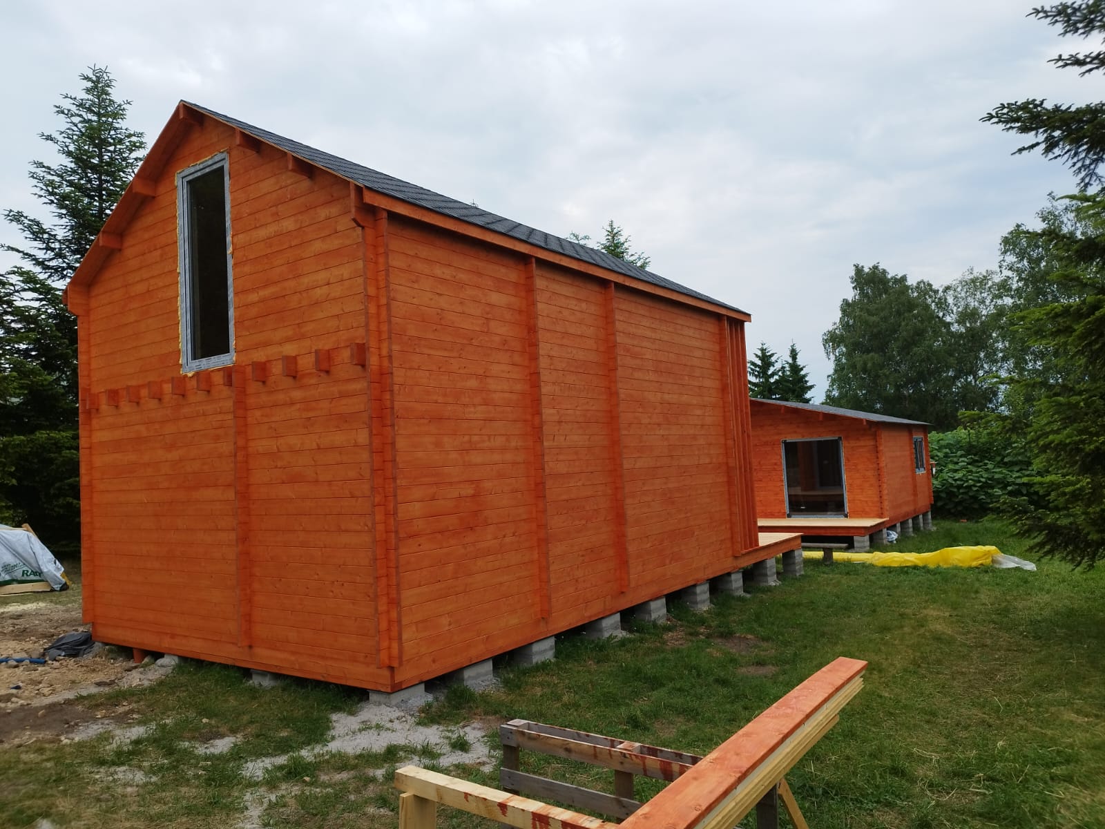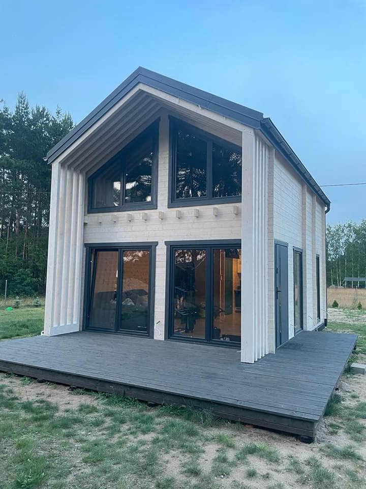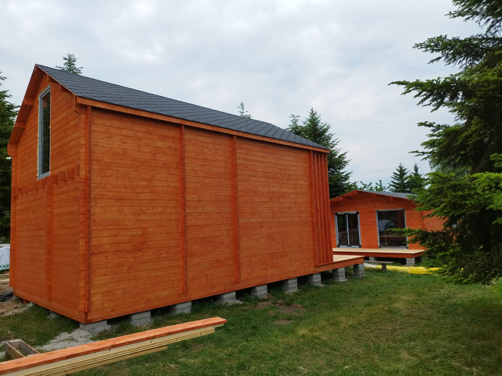 • Konstrukcja domu szkieletowego z przekroju belek 160/60 świerk C24+płyta konstrukcyjna P5 + płyta drzewna pióro-wpust (Naturheld wand 60mm) ściany z zewnątrz + tynk elewacyjny