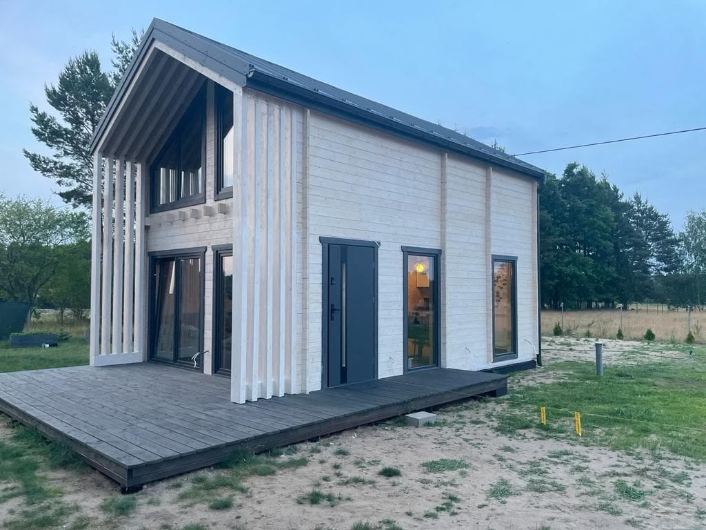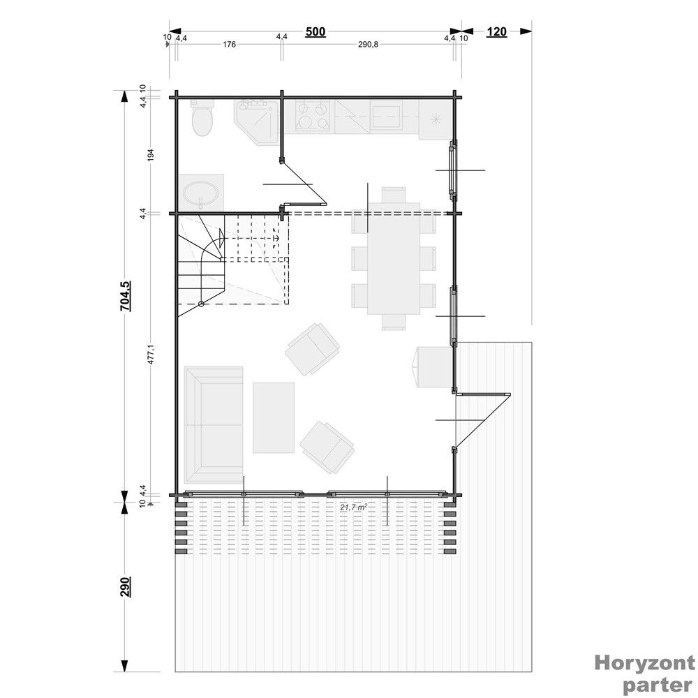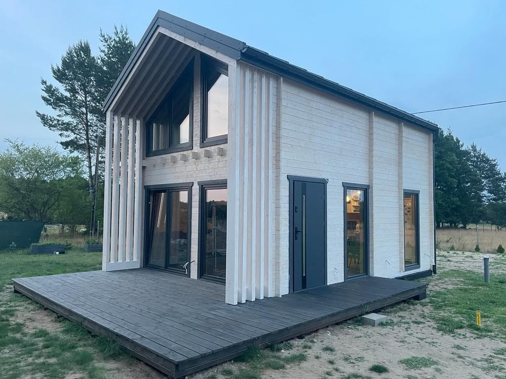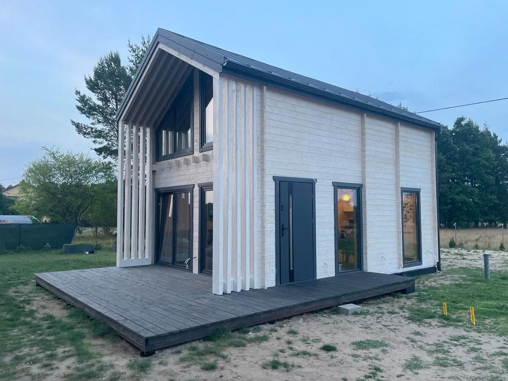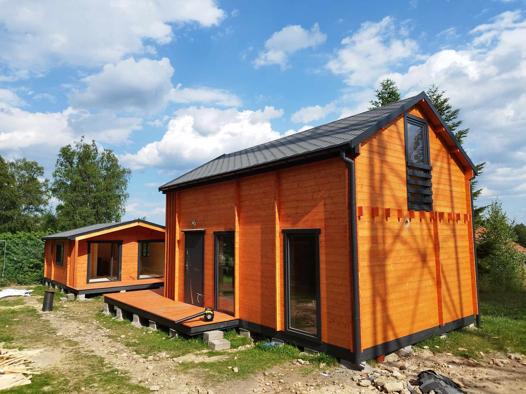 • Konstrukcja domu szkieletowego z przekroju belek 160/60 świerk C24+płyta konstrukcyjna P5 + płyta drzewna pióro-wpust (Naturheld wand 60mm) ściany z zewnątrz + tynk elewacyjny