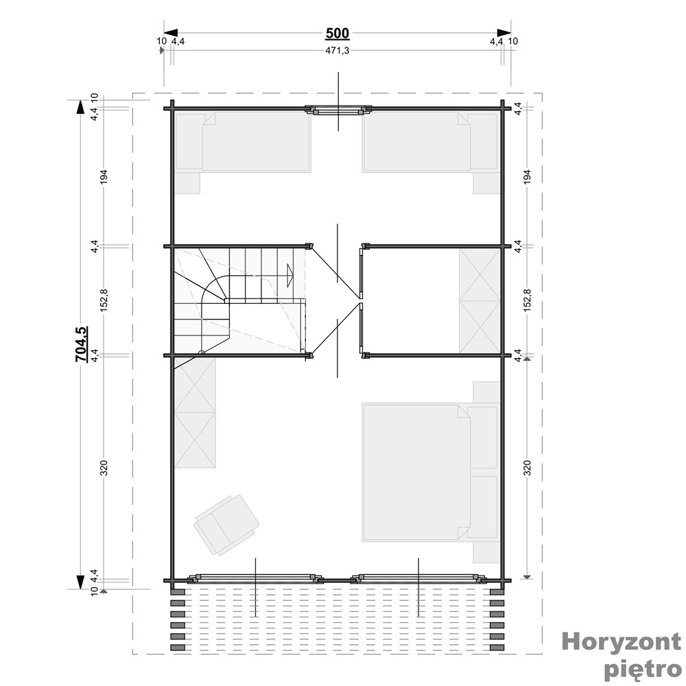 • Konstrukcja ścian wewnętrznych z przekroju 145/45 świerk C24