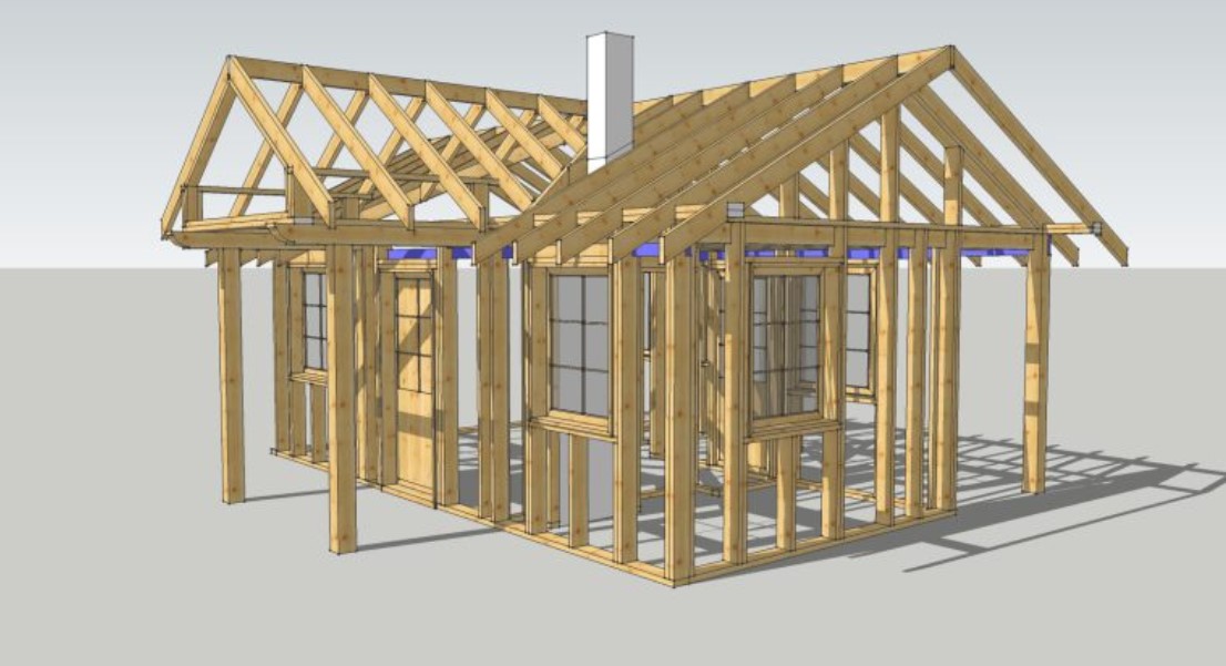 • Konstrukcja domu szkieletowego z przekroju belek 160/60 świerk C24+płyta konstrukcyjna P5 + płyta drzewna pióro-wpust (Naturheld wand 60mm) ściany z zewnątrz + tynk elewacyjny