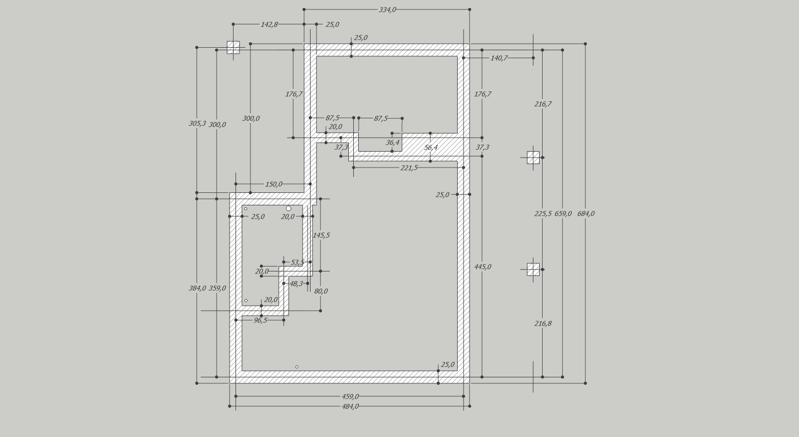 • Konstrukcja ścian wewnętrznych z przekroju 145/45 świerk C24