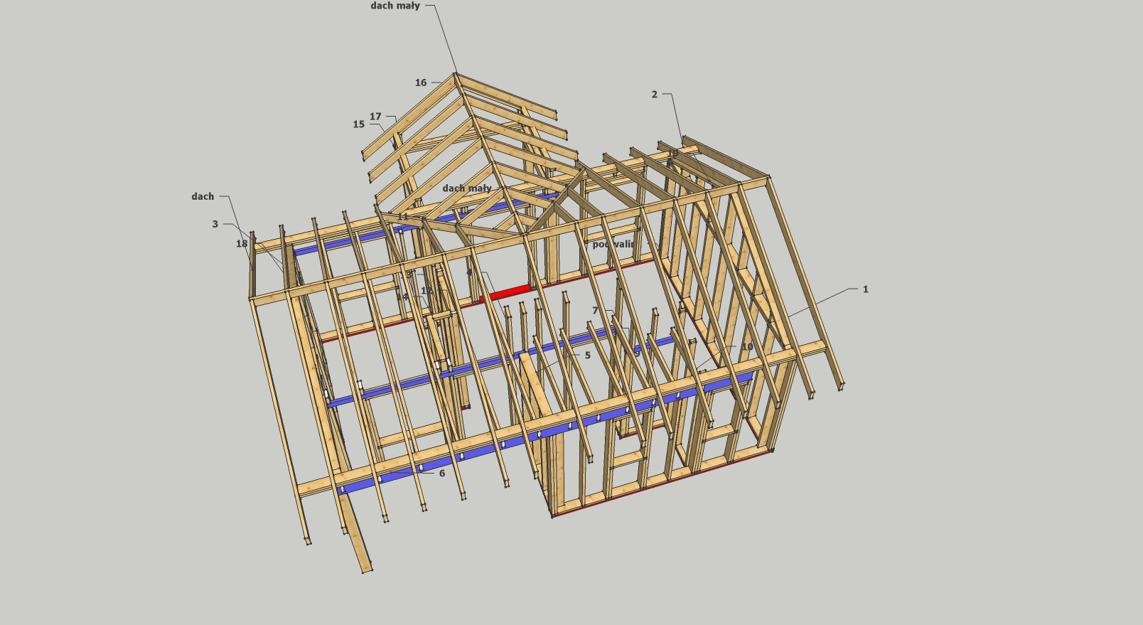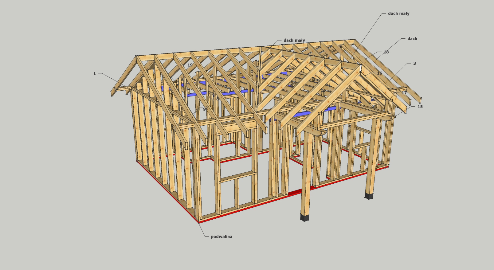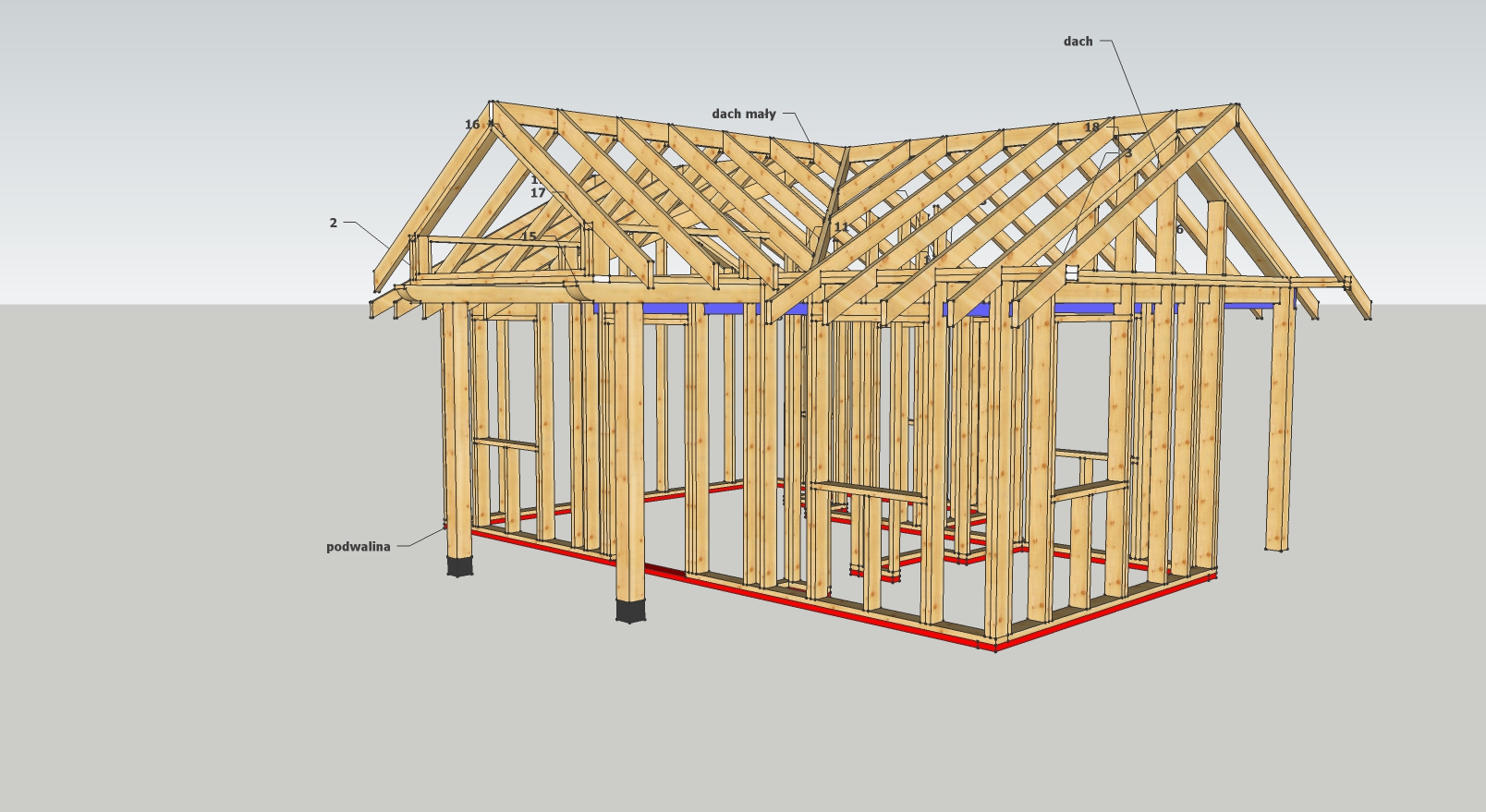 • Konstrukcja ścian działowych z przekroju belek 145/45 świerk C24