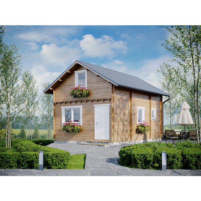 • Konstrukcja domu szkieletowego z przekroju belek 160/60 świerk C24+płyta konstrukcyjna P5 + płyta drzewna pióro-wpust (Naturheld wand 60mm) ściany z zewnątrz + tynk elewacyjny