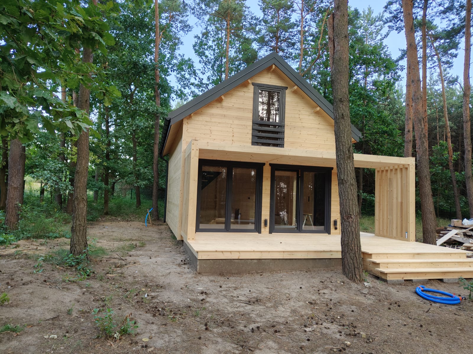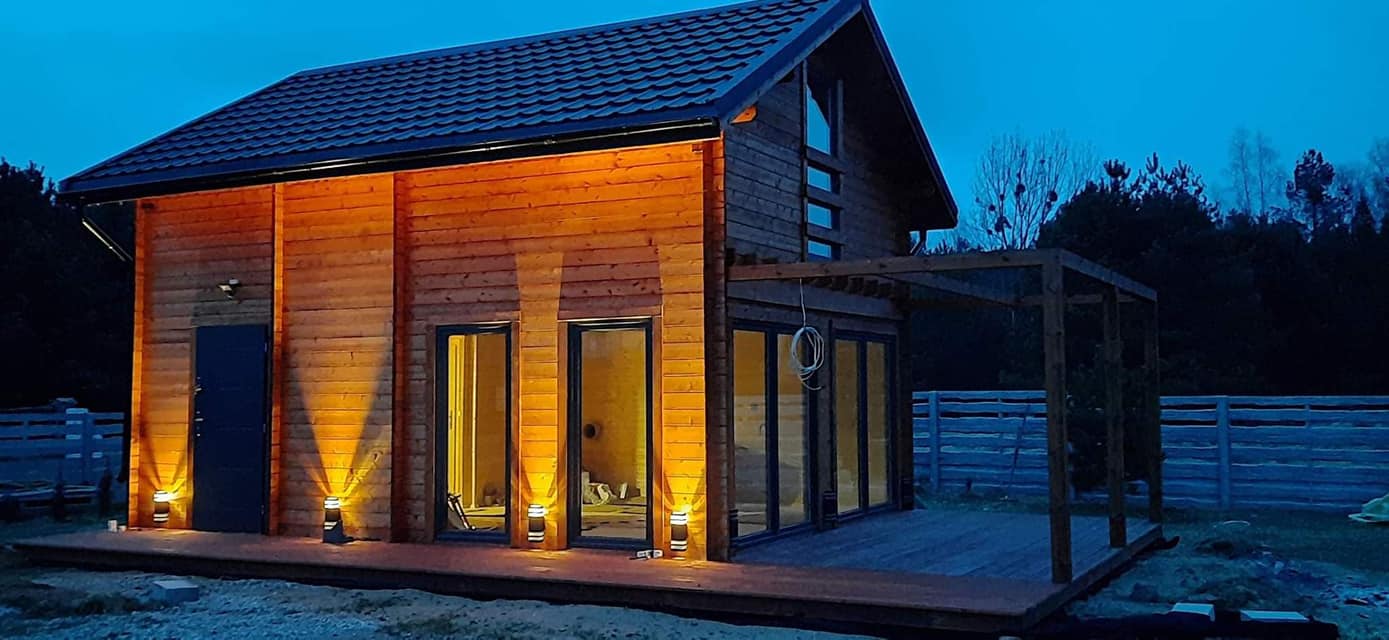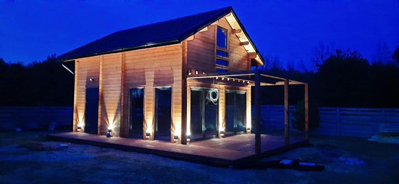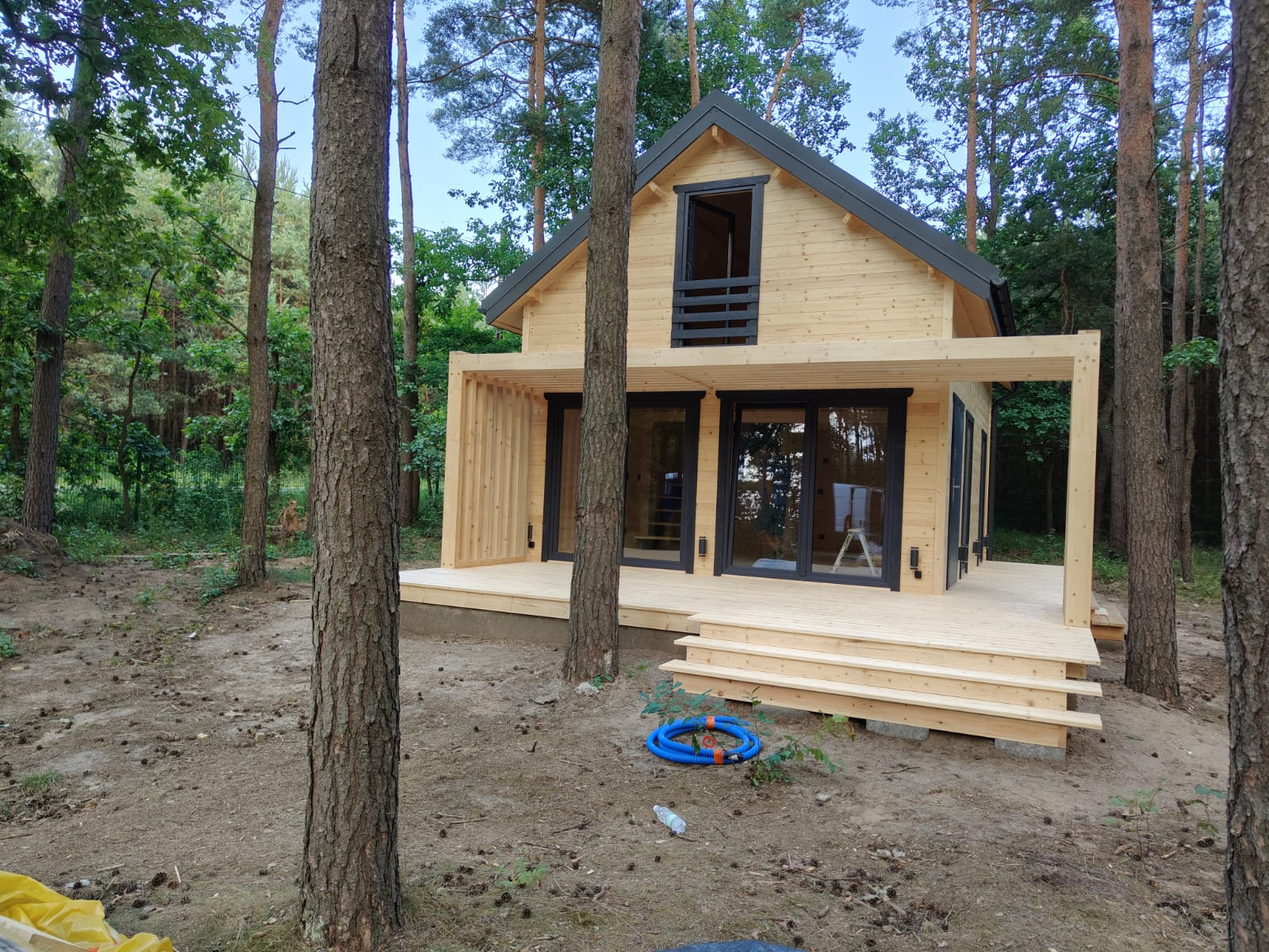 Konstrukcja domu szkieletowego z przekroju belek 160/60 świerk C24+płyta konstrukcyjna P5 + płyta drzewna pióro-wpust (Naturheld wand 60mm) ściany z zewnątrz + tynk elewacyjny