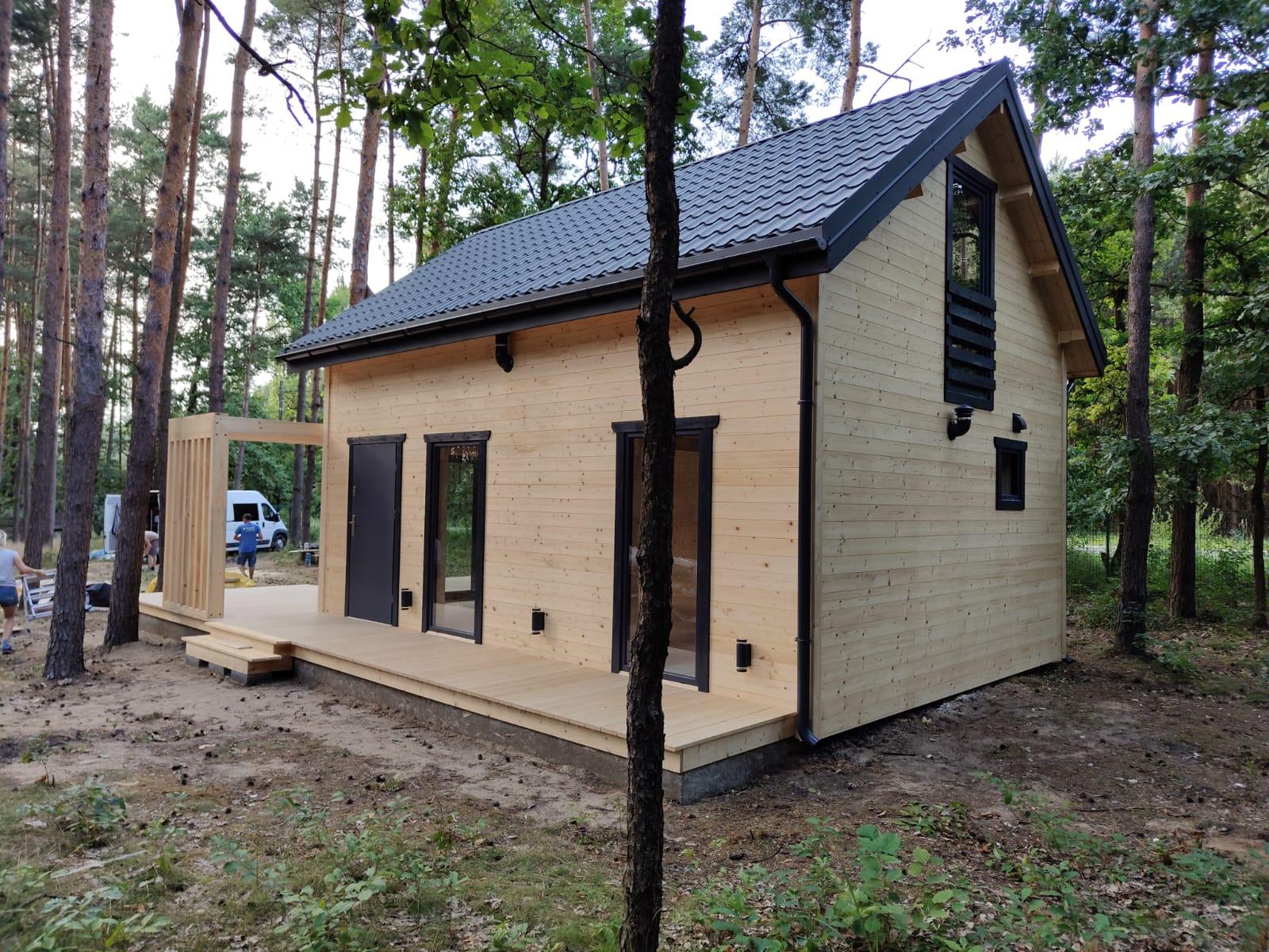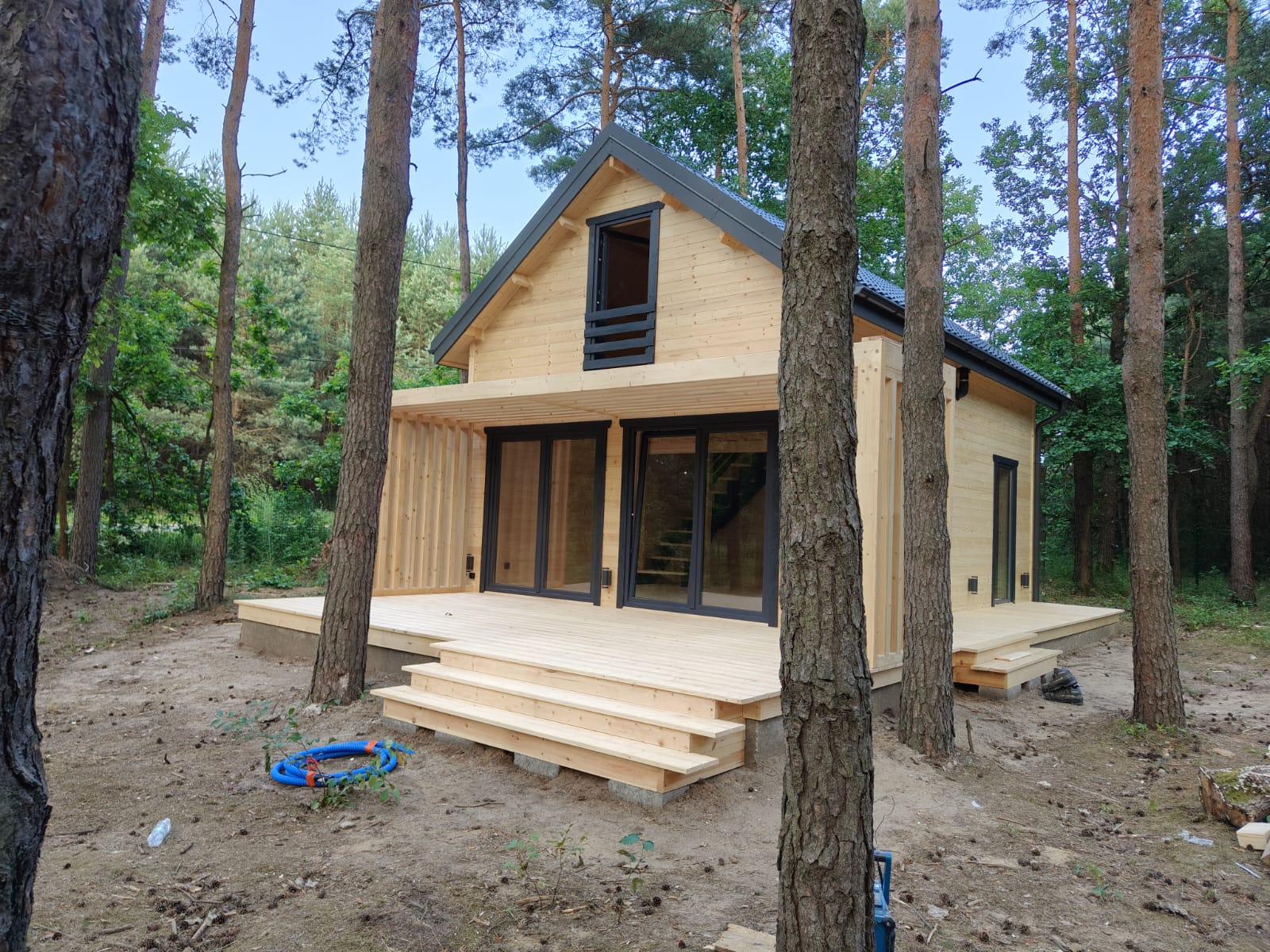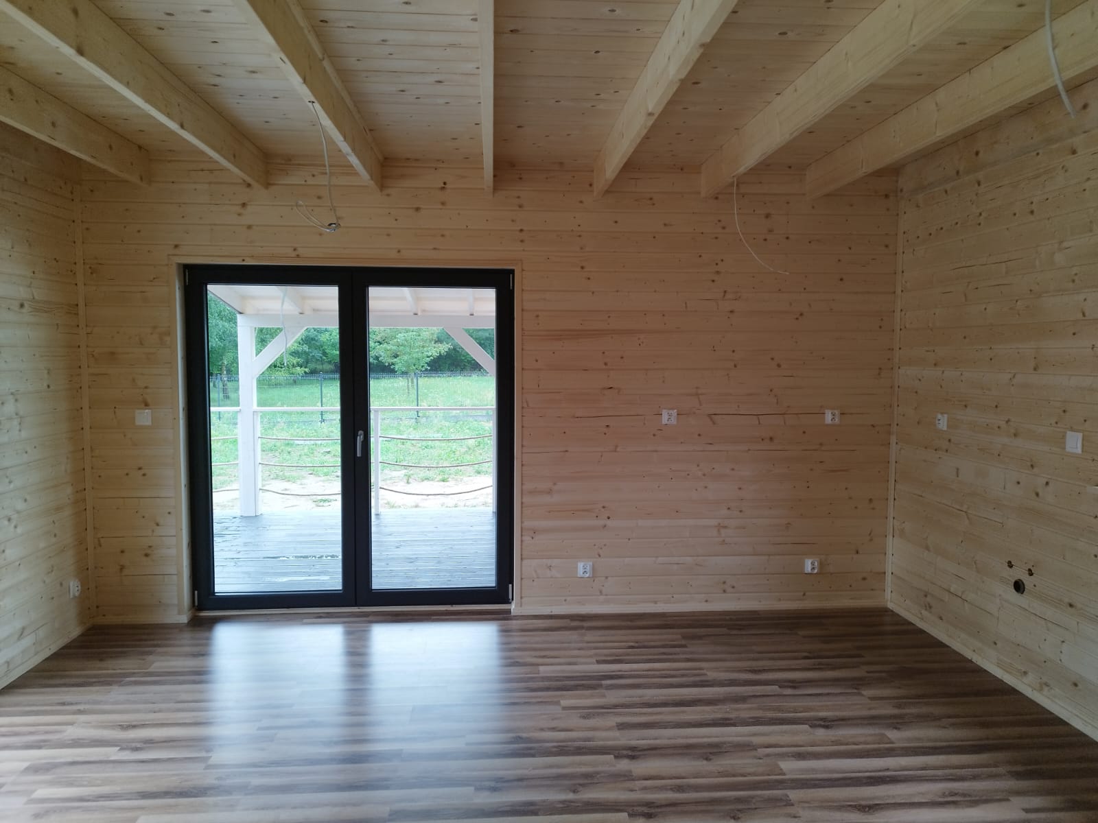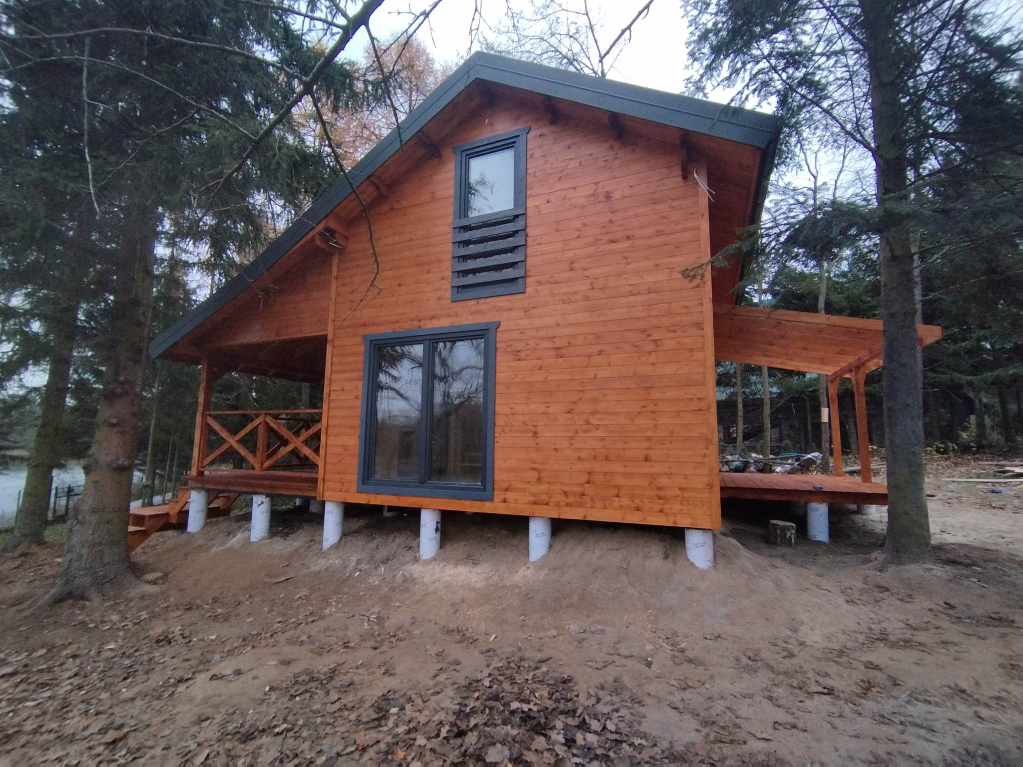 Konstrukcja domu szkieletowego z przekroju belek 160/60 świerk C24+płyta konstrukcyjna P5 + płyta drzewna pióro-wpust (Naturheld wand 60mm) ściany z zewnątrz + tynk elewacyjny