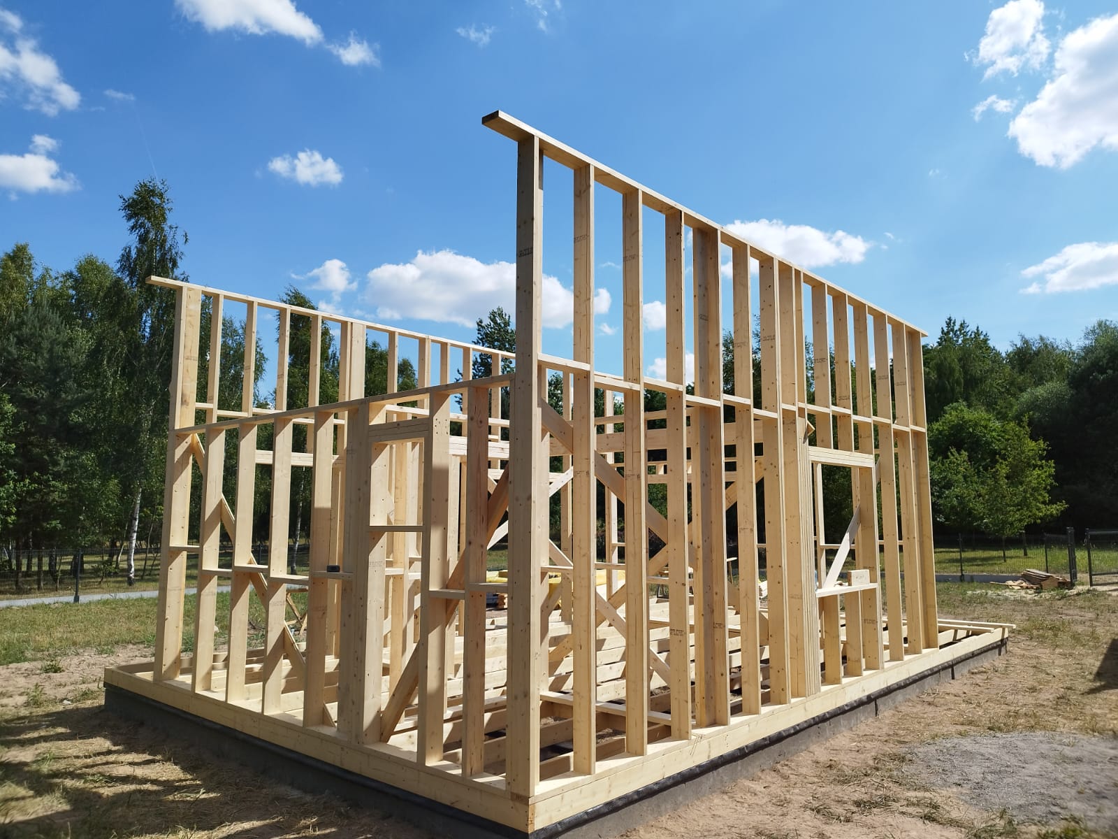 Konstrukcja ścian działowych z przekroju belek 145/45 świerk C24