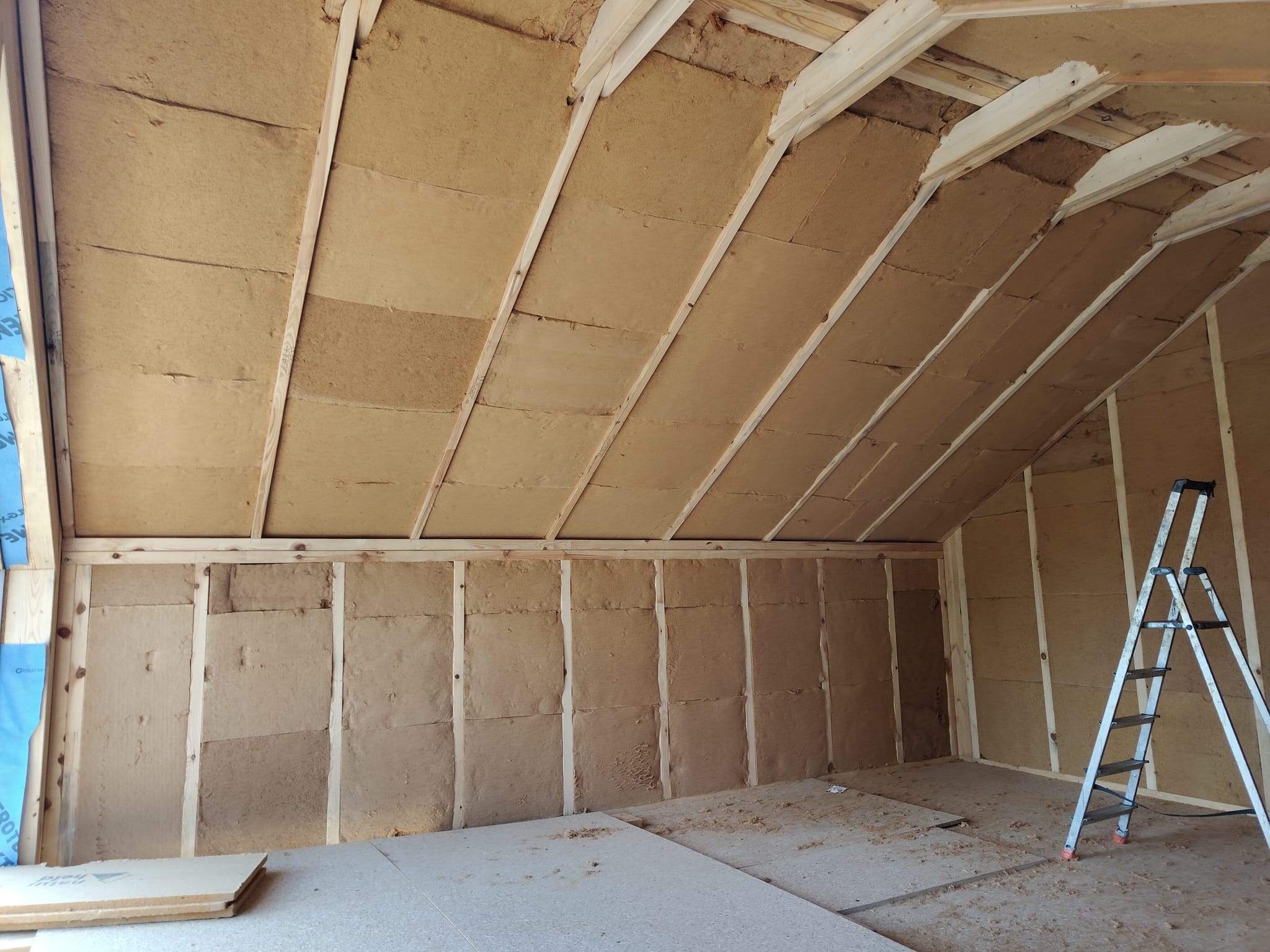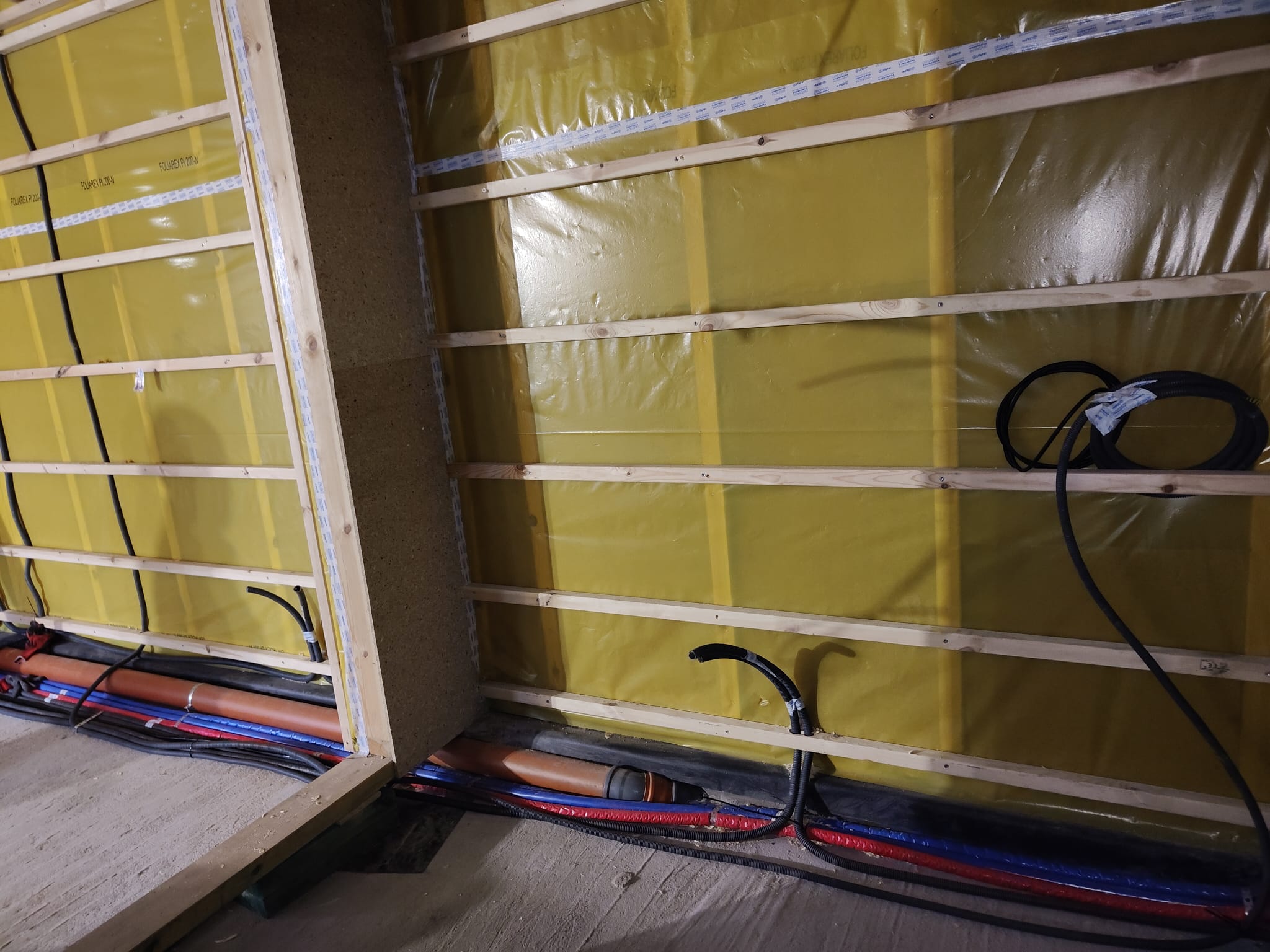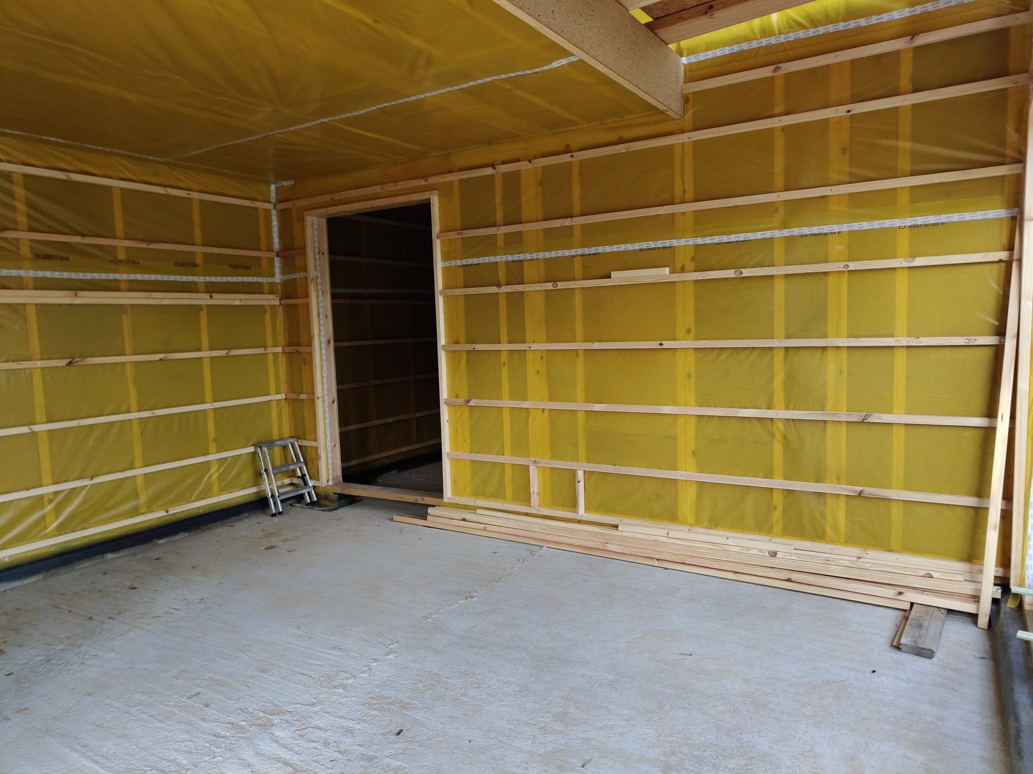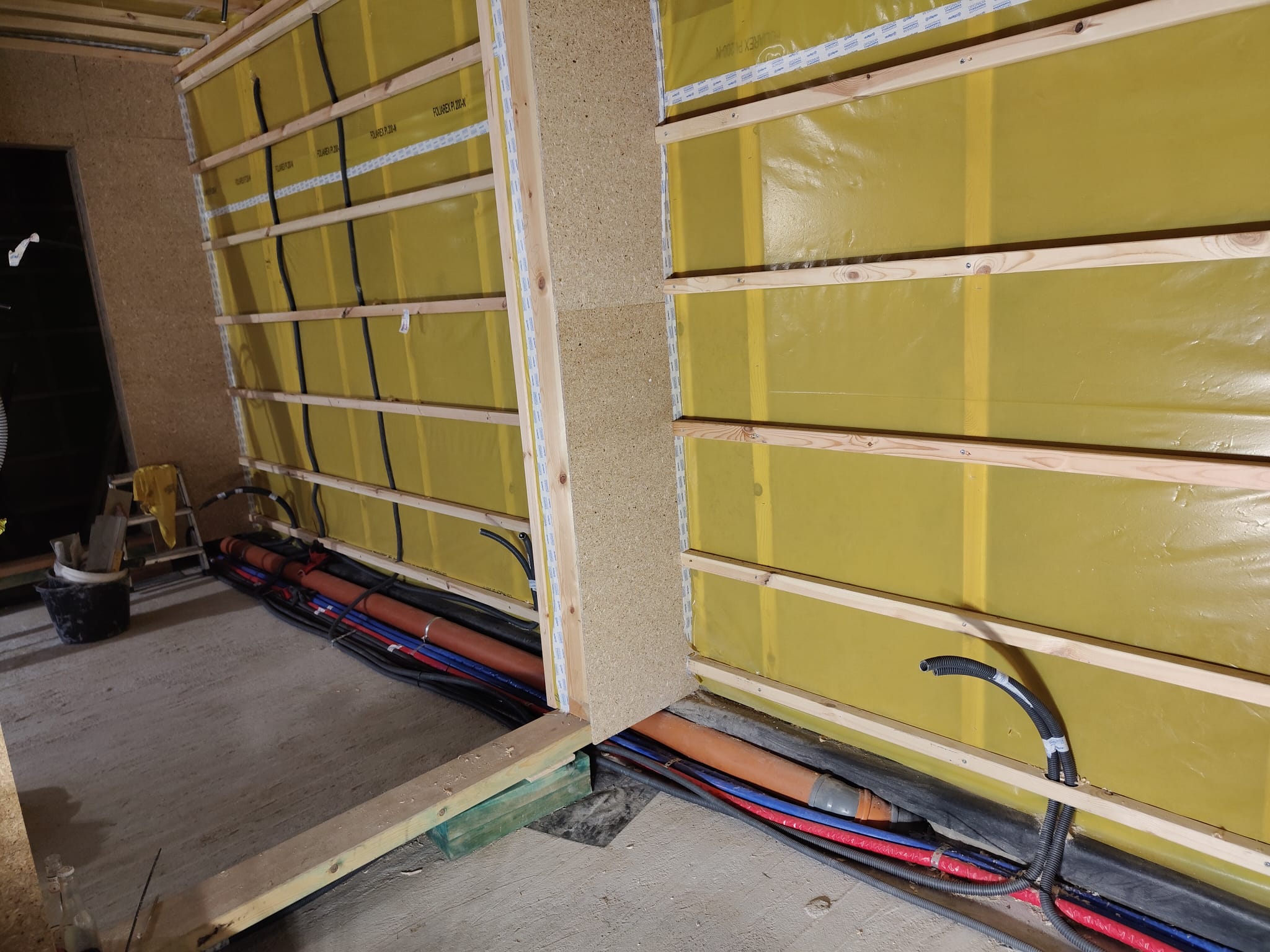 Ocieplenie wewnątrz ścian wełną drzewną (Naturheld flex 160mm)+płyta konstrukcyjna P5 + folia paroizolacyjna + ruszt instalacyjny + KG bez gładzi