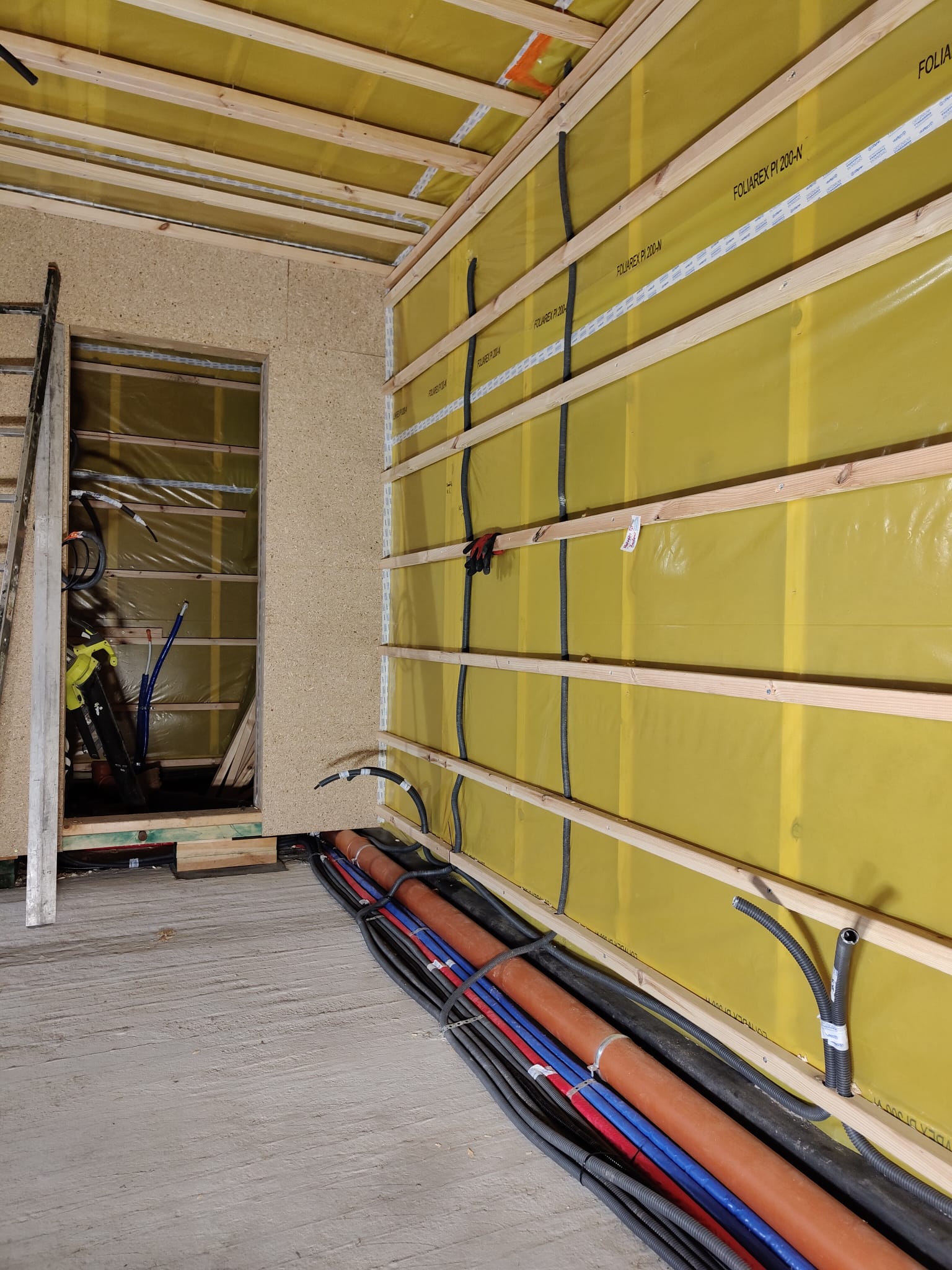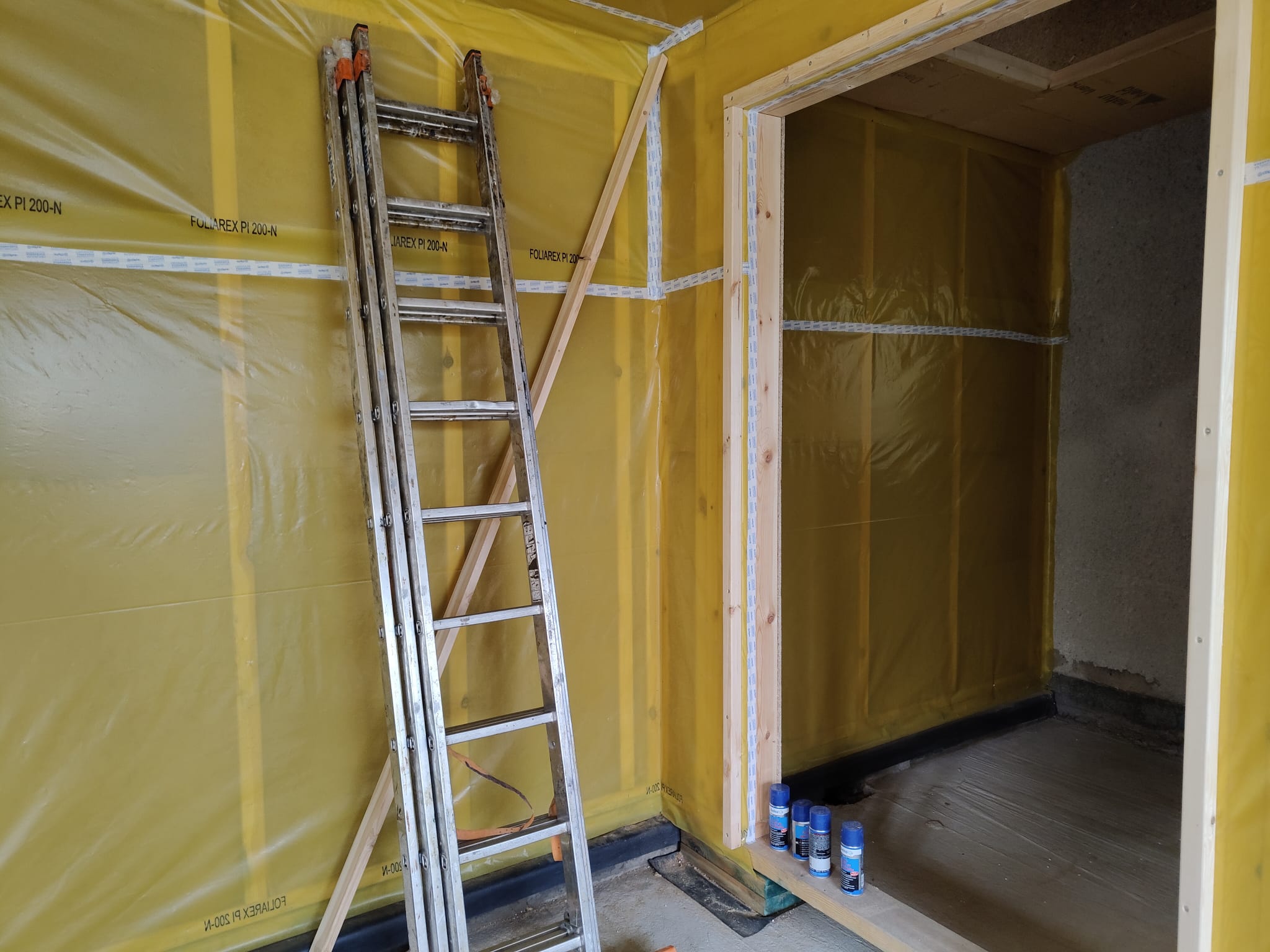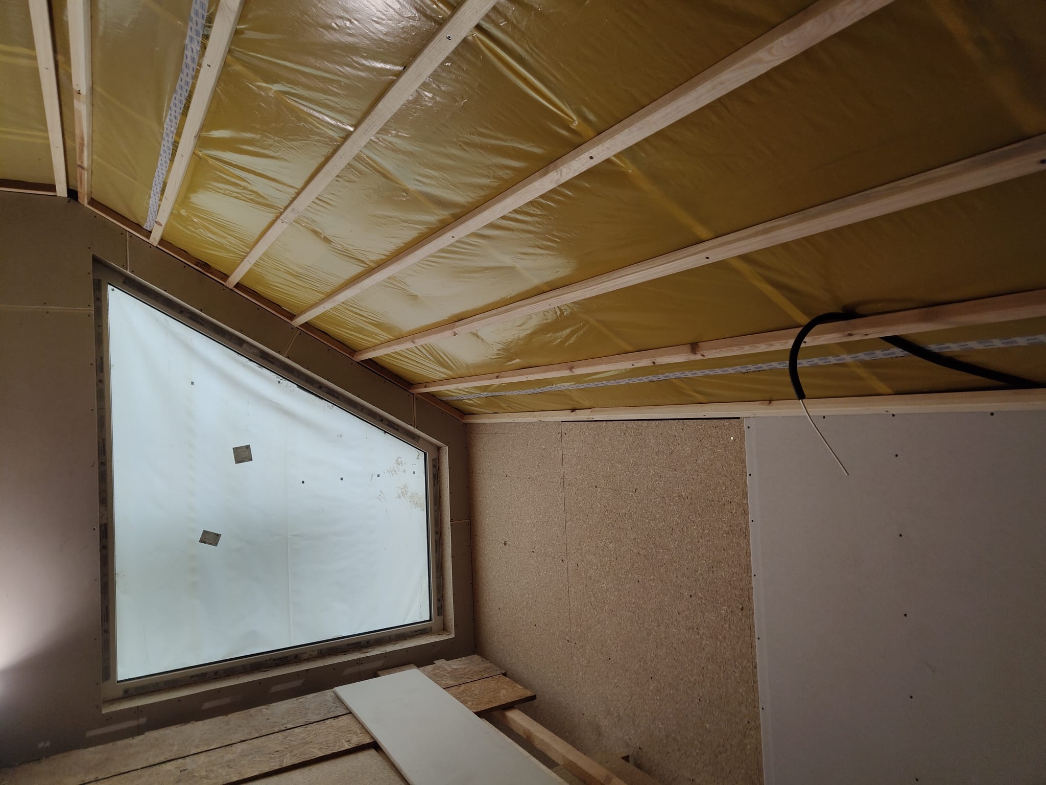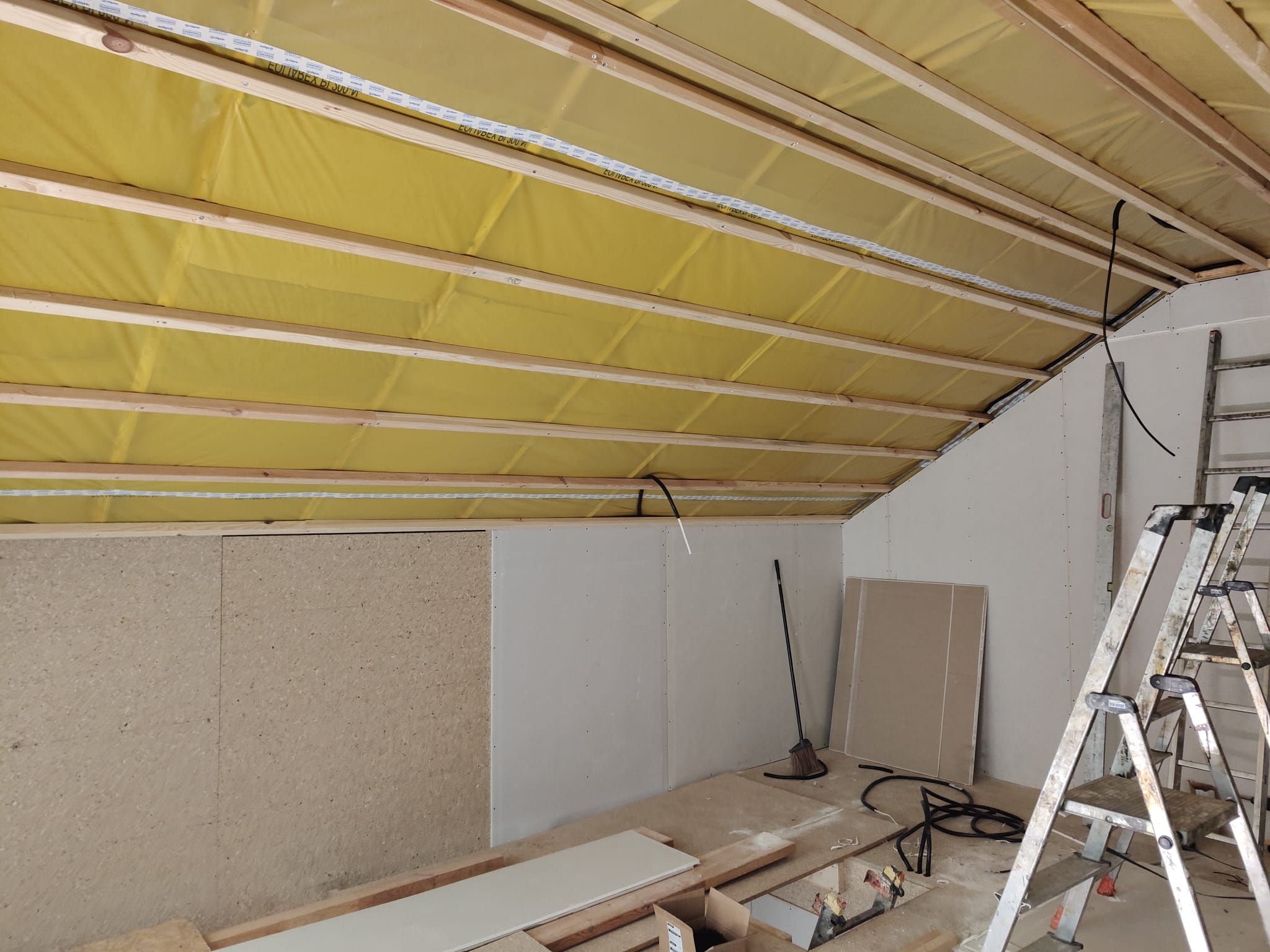 Ocieplenie wewnątrz ścian wełną drzewną (Naturheld flex 160mm)+płyta konstrukcyjna P5 + folia paroizolacyjna + ruszt instalacyjny + KG bez gładzi