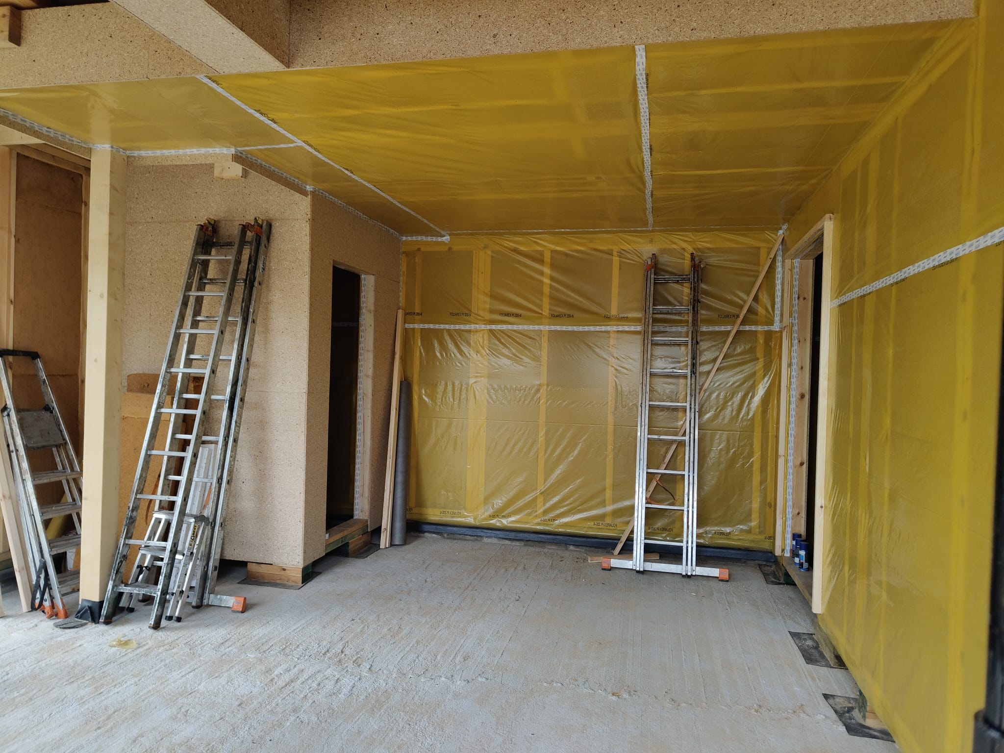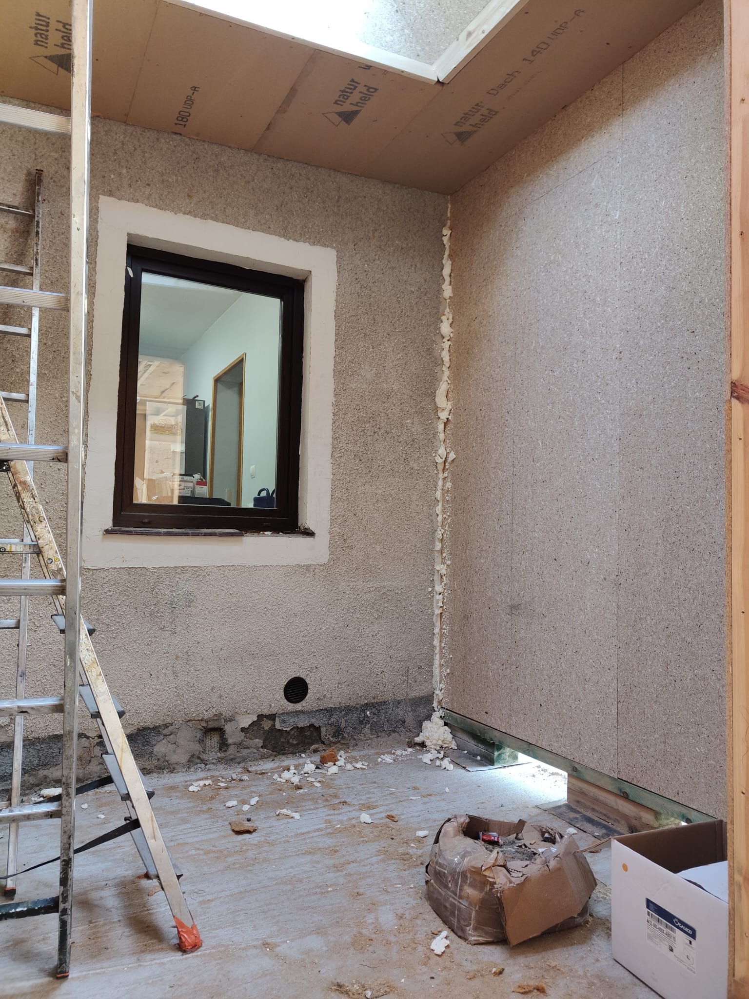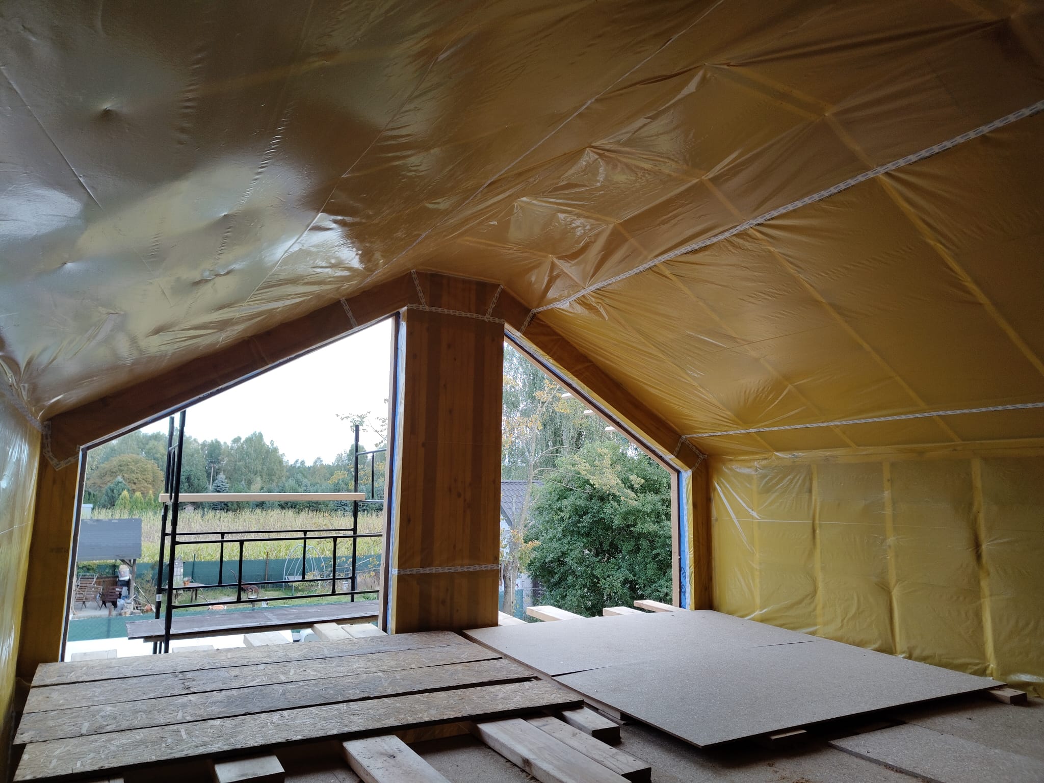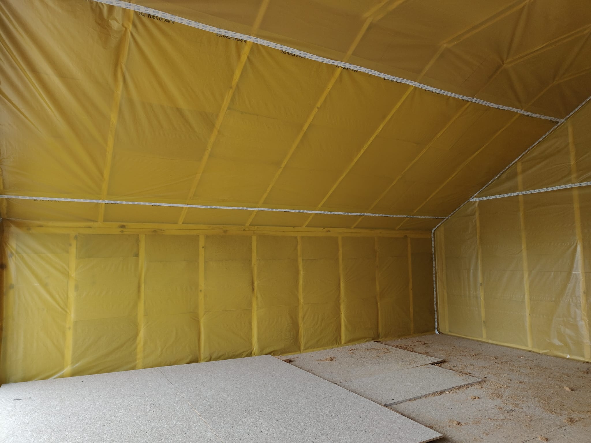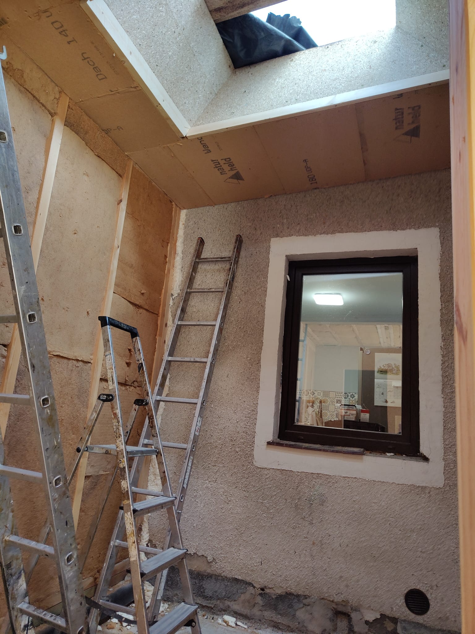 Ocieplenie wewnątrz ścian wełną drzewną (Naturheld flex 160mm)+płyta konstrukcyjna P5 + folia paroizolacyjna + ruszt instalacyjny + KG bez gładzi