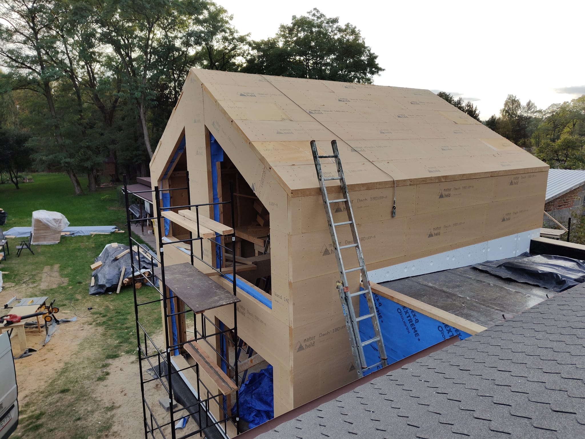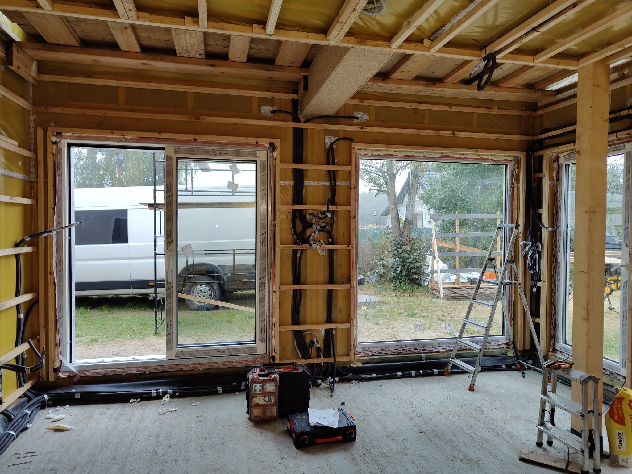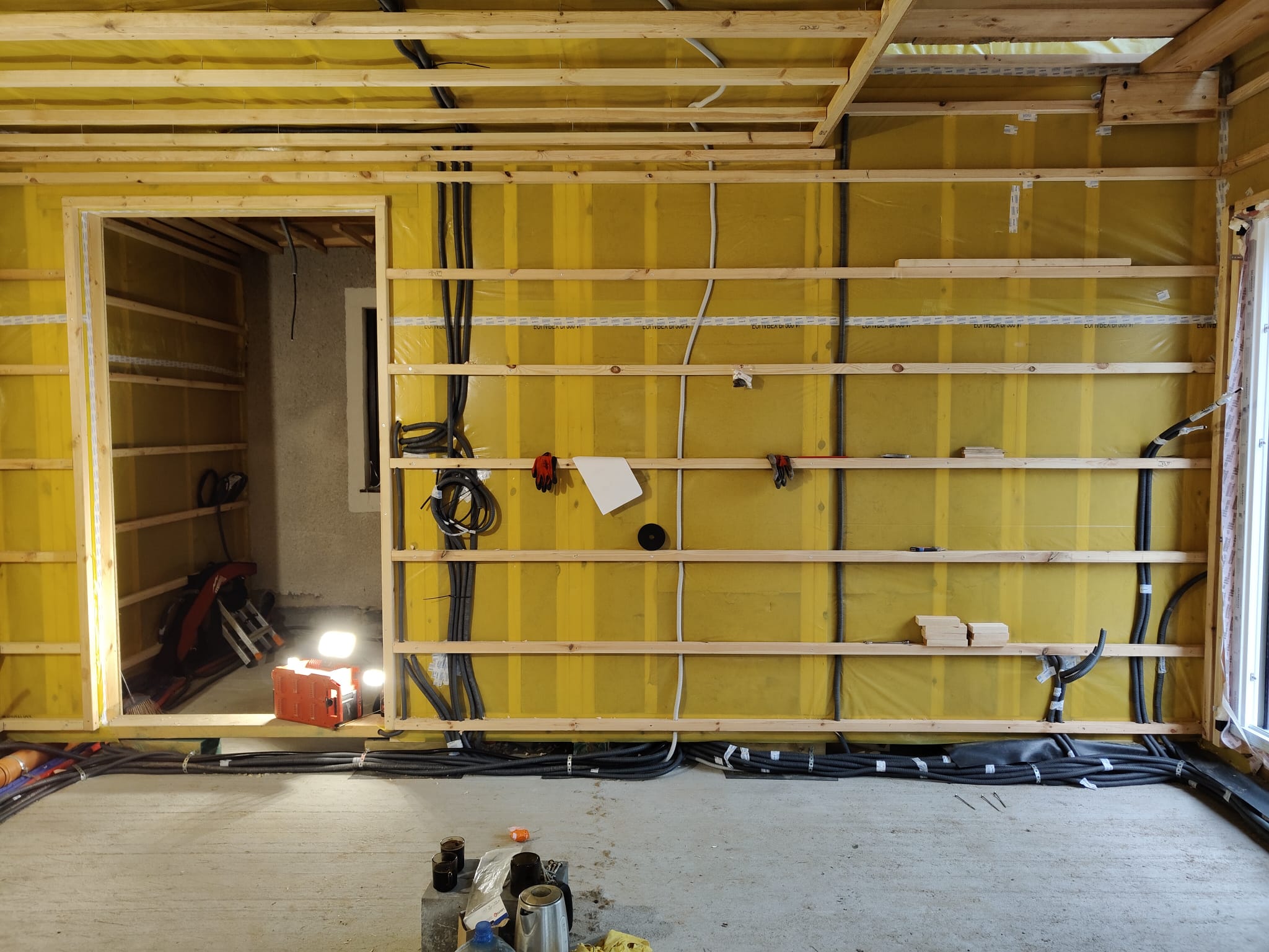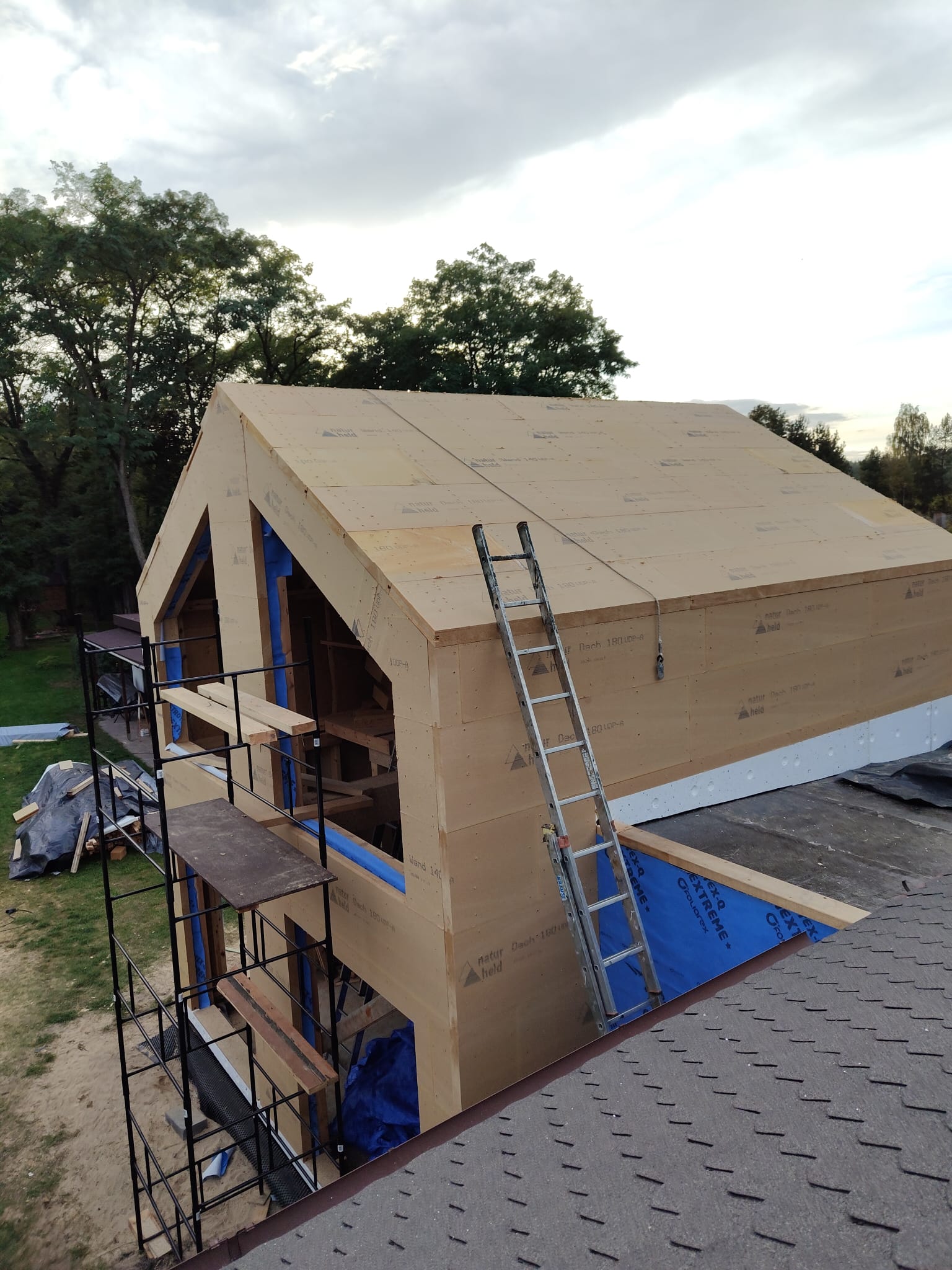 Ocieplenie wewnątrz ścian wełną drzewną (Naturheld flex 160mm)+płyta konstrukcyjna P5 + folia paroizolacyjna + ruszt instalacyjny + KG bez gładzi