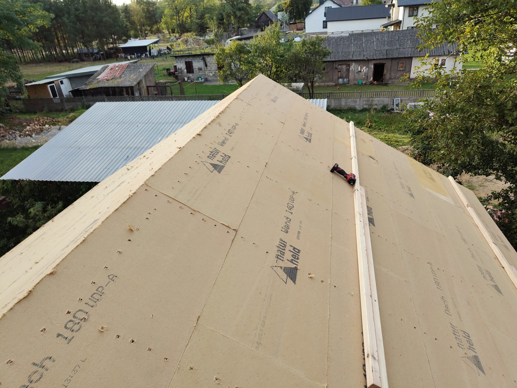 Ocieplenie dachu wełną drzewną (Naturheld flex 160mm) + folia paroizolacyjna + wełna (Naturheld flex 40mm)+ KG bez gładzi