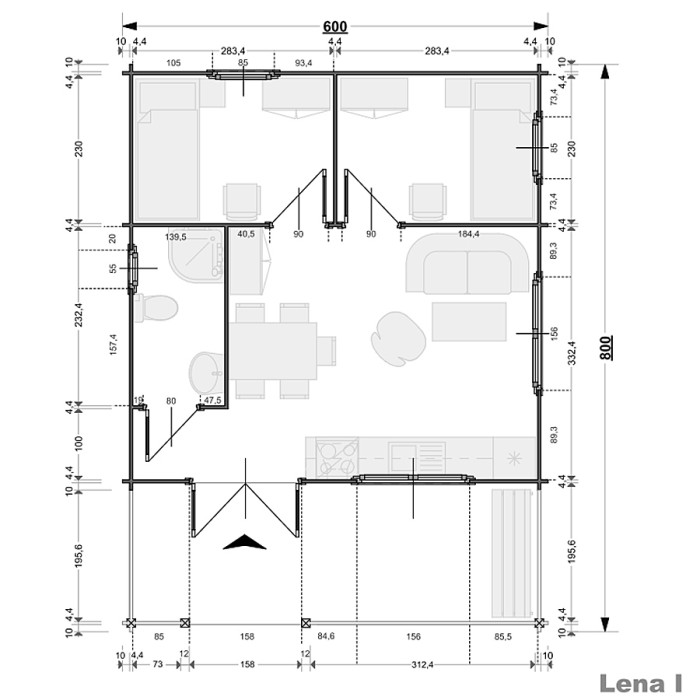 • Konstrukcja domu szkieletowego z przekroju belek 160/60 świerk C24+płyta konstrukcyjna P5 + płyta drzewna pióro-wpust (Naturheld wand 60mm) ściany z zewnątrz + tynk elewacyjny