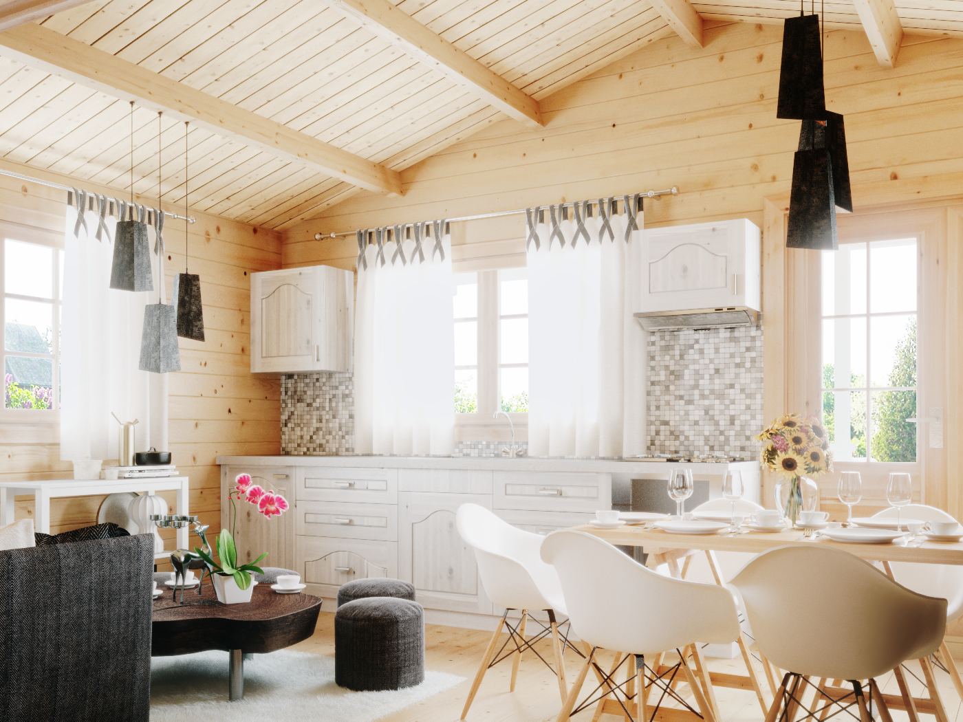 • Konstrukcja dachu przekrój belek 220/60 świerk C24 + płyta drzewna pióro-wpust (Naturheld Wand 60mm) z belkami stropowymi