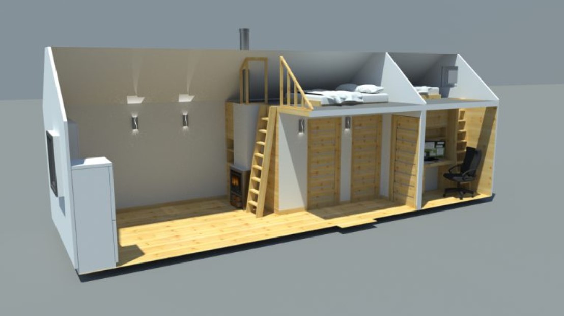 • Konstrukcja domu szkieletowego z przekroju belek 160/60 świerk C24+płyta konstrukcyjna P5 + płyta drzewna pióro-wpust (Naturheld wand 60mm) ściany z zewnątrz + tynk elewacyjny