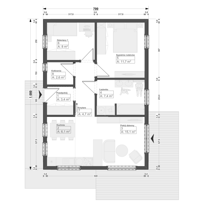 Osobny dodatkowy koszt projektu budowlanego + adaptacja + kierownik budowy lub na zgłoszenie