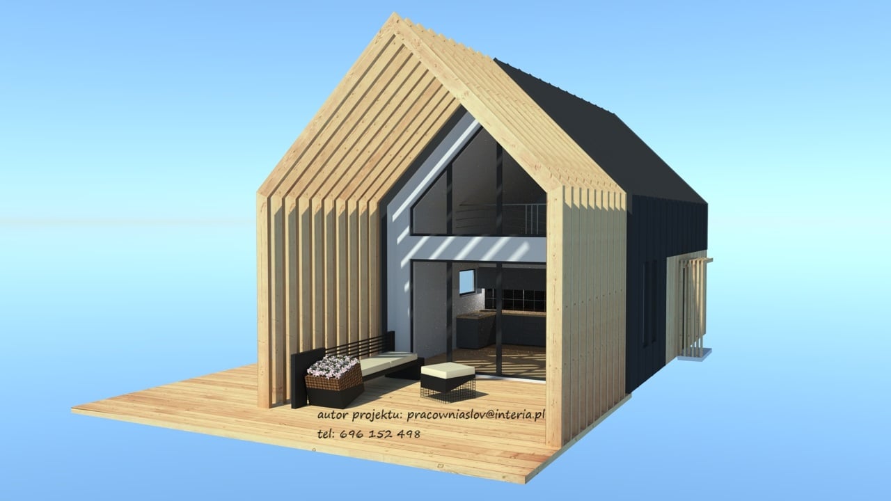 • Konstrukcja domu szkieletowego z przekroju belek 160/60 świerk C24+płyta konstrukcyjna P5 + płyta drzewna pióro-wpust (Naturheld wand 60mm) ściany z zewnątrz + tynk elewacyjny