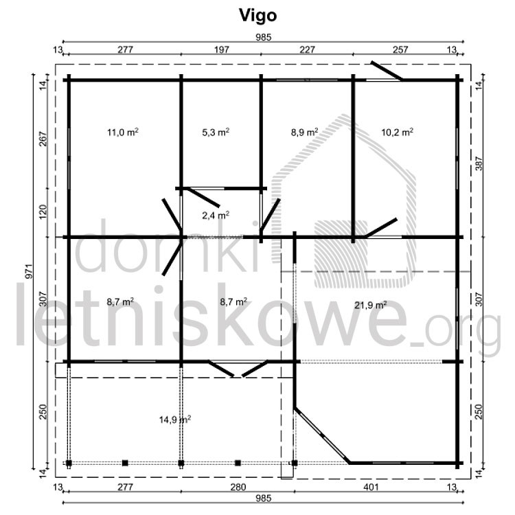 • Wykończenie ścian – drewno świerkowe C24  balik pióro-wpust płaski 44mm +boazeria