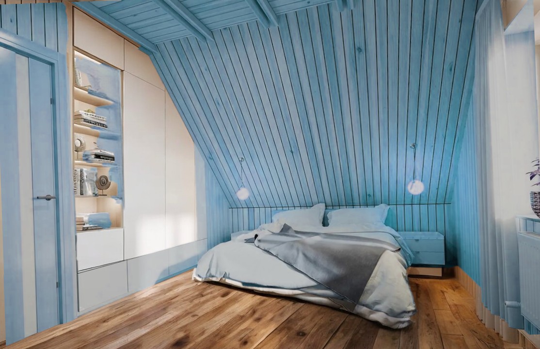• Ocieplenie dachu wełną drzewną (Naturheld flex 160mm) + folia paroizolacyjna + wełna (Naturheld flex 40mm)+ KG bez gładzi