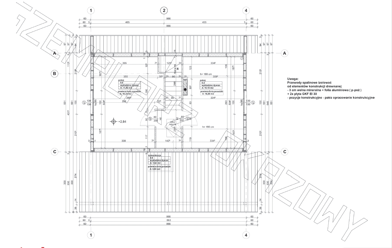 • Konstrukcja ścian wewnętrznych z przekroju 145/45 świerk C24